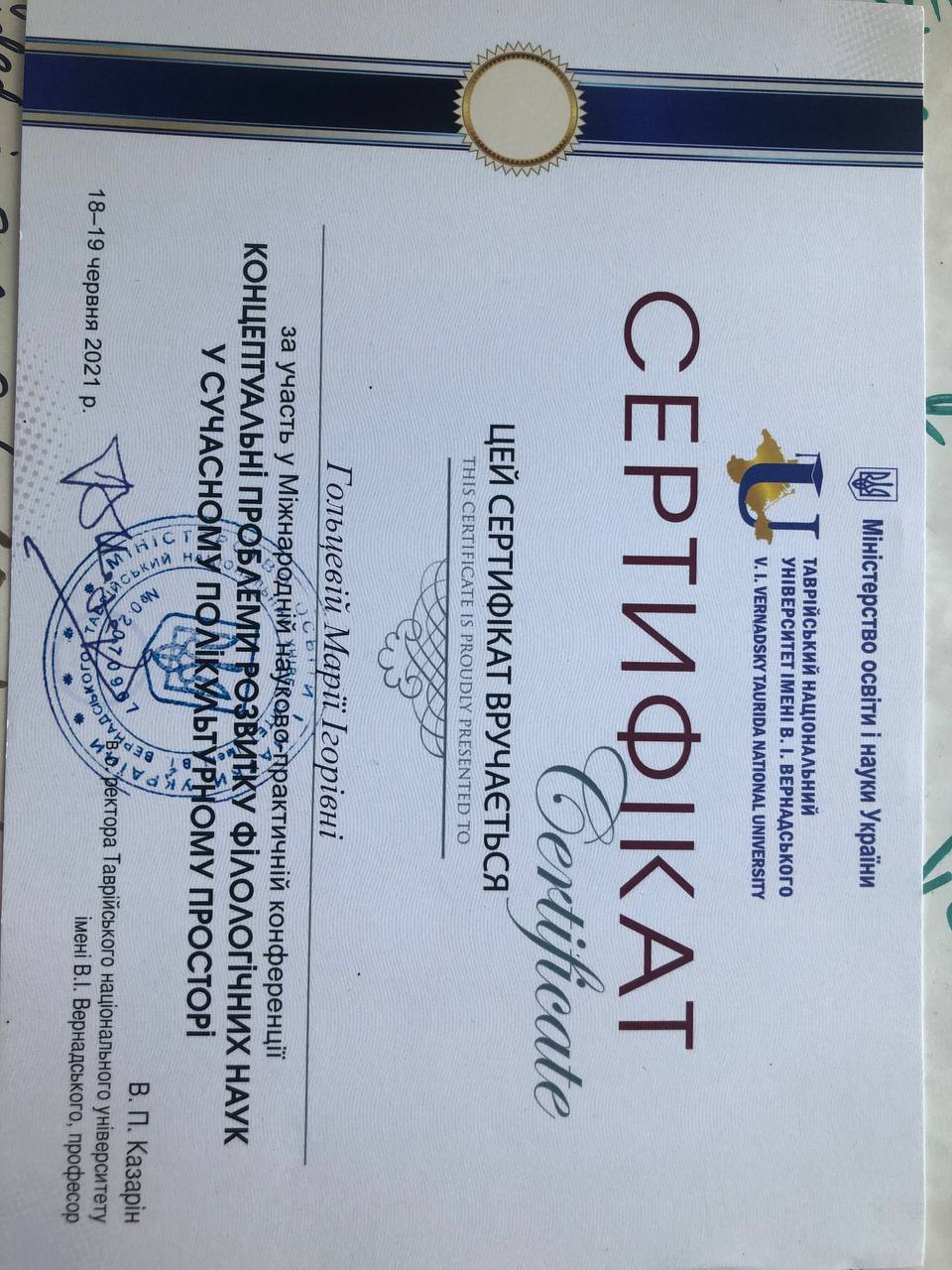 | 8001 | Концептуальні проблеми розвитку філологічних наук у сучасному полікультурному просторі | Лінгвопрагматичні характеристики тактики введення в оману в англомовних промовах на засіданнях ради безпеки ООН за 2020 рік | Таврійський національний університет імені В.І.Вернадського |