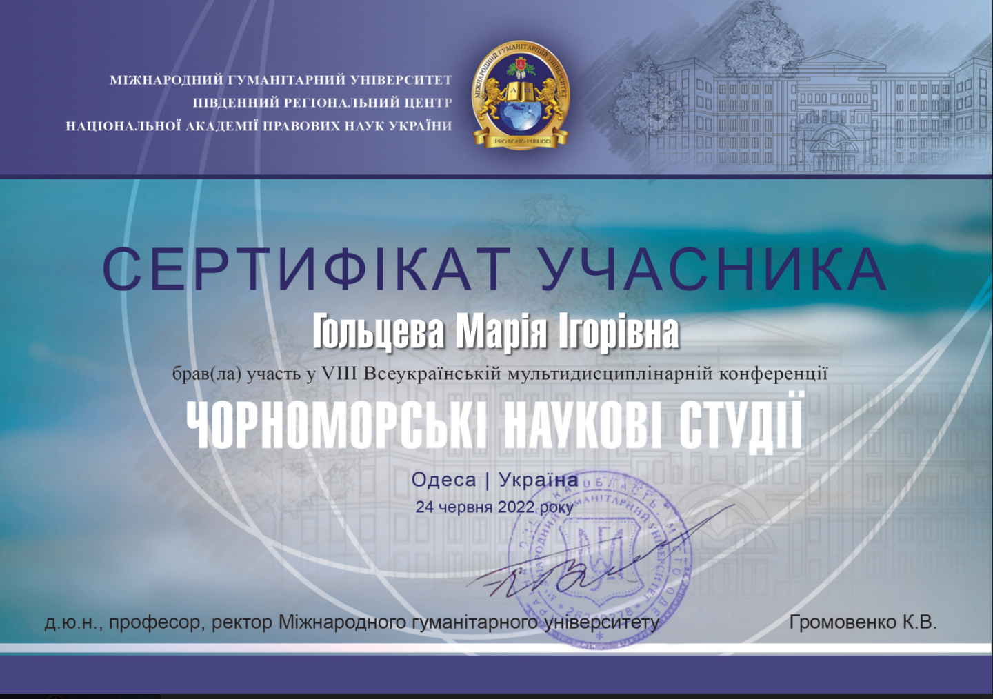 | 8217 | VІIІ Всеукраїнської мультидисциплінарної конференції «Чорноморські наукові студії» | Фреймовий аналіз концепту брехня в англомовному дипломатичному дискурсі Ради Безпеки ООН | Одеса |