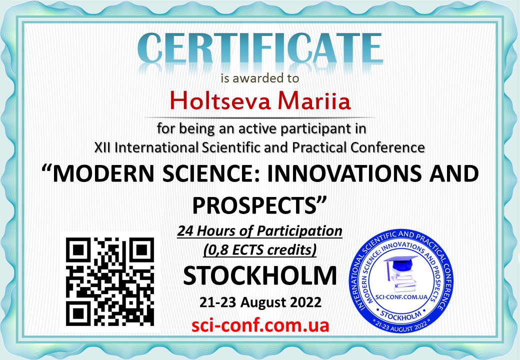 | 12560 | X Міжнародна науково-практична конференція INTERNATIONAL SCIENTIFIC INNOVATIONS IN HUMAN LIFE | The violations in a diplomatic speech. | Лондон, Великобританія | document.pdf | |