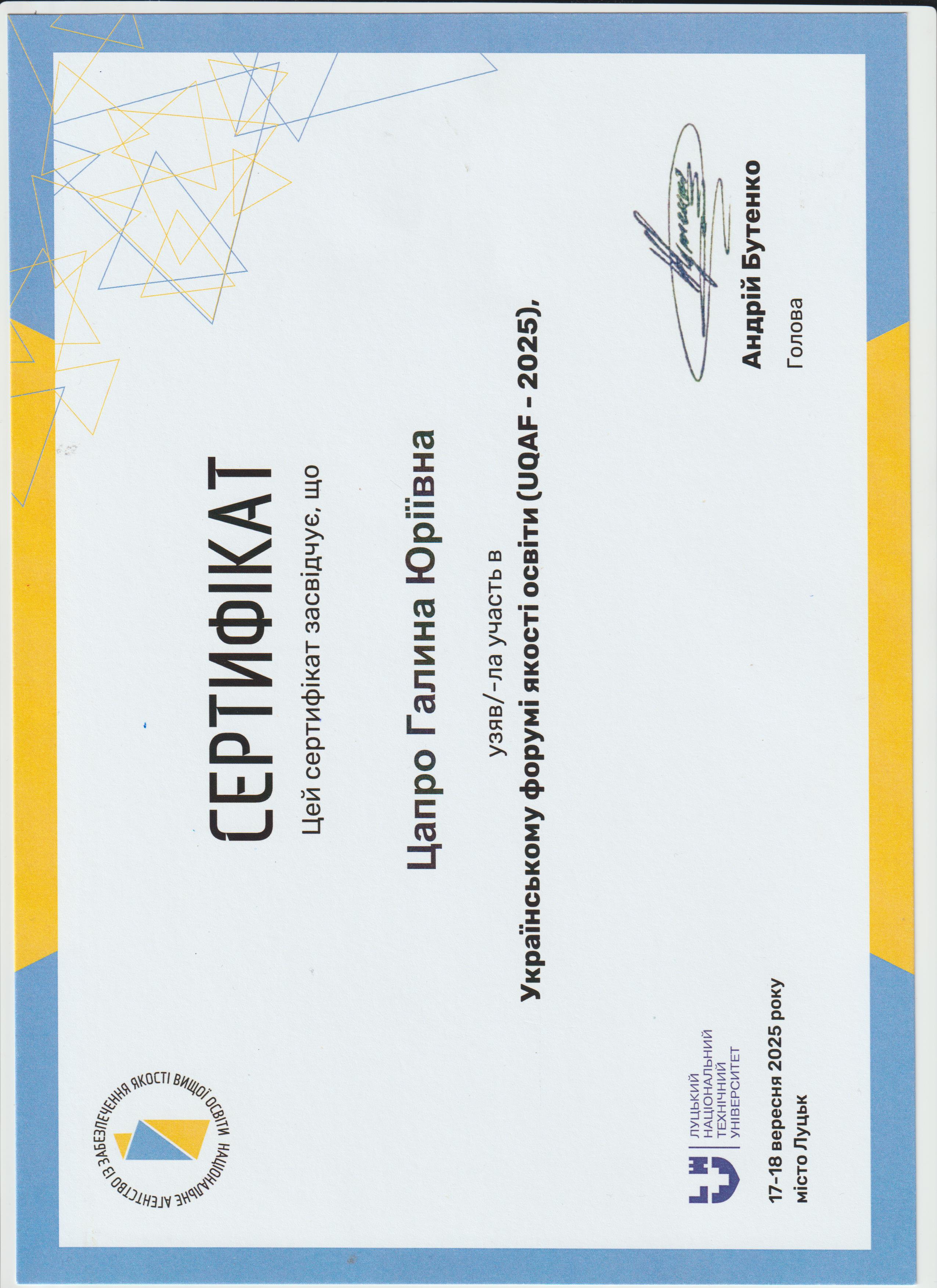 | 12254 | Український форум якості освіти (UQAF - 2025) | учасник | Луцьк, Україна |
