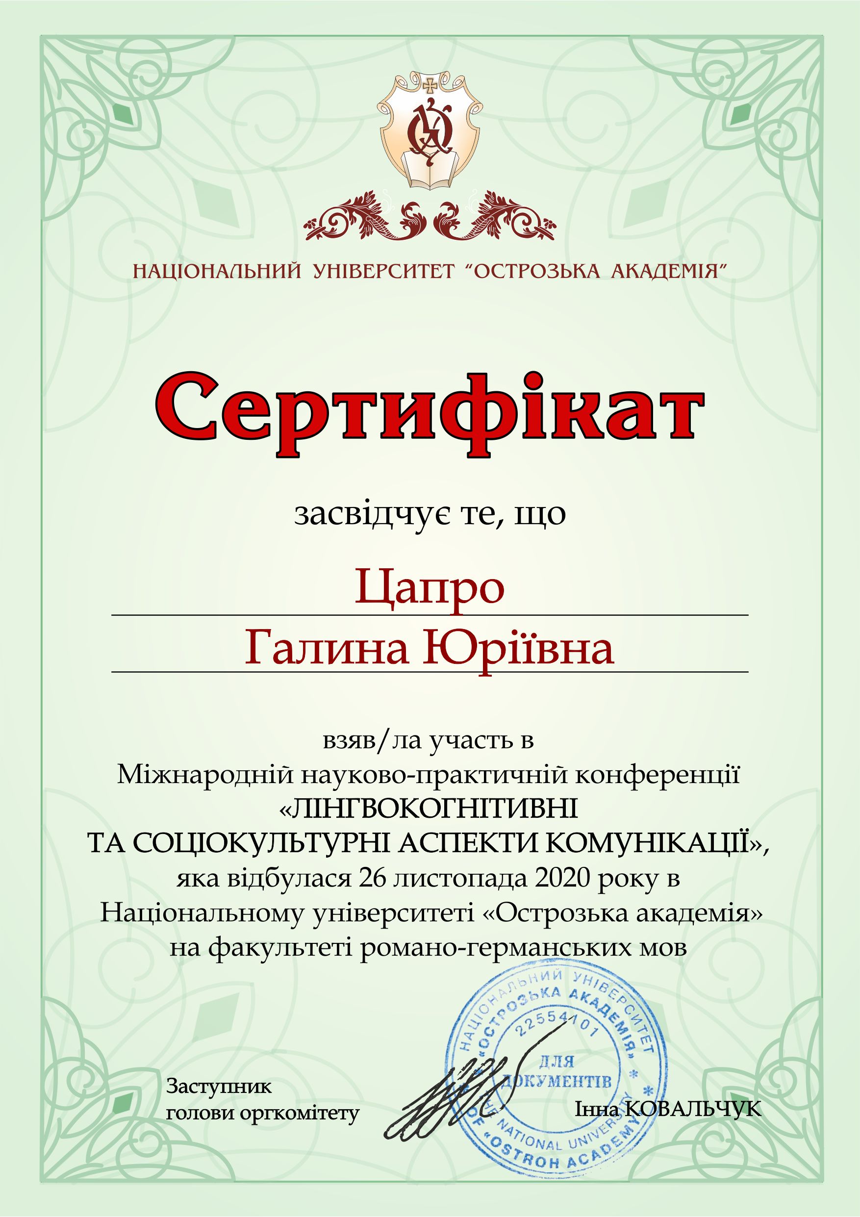 | 209 | Факультет романо-германської філології | Кафедра англійської мови та комунікації | 56.3 | 1 | 2025 | https://www.researchgate.net/profile/Galyna_Tsapro |