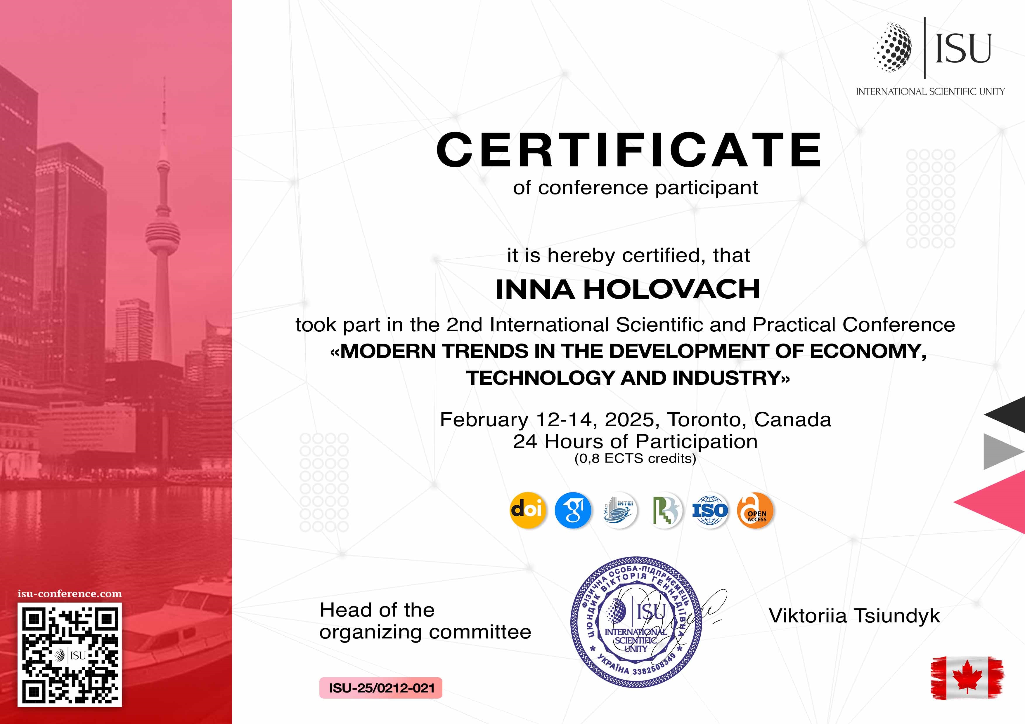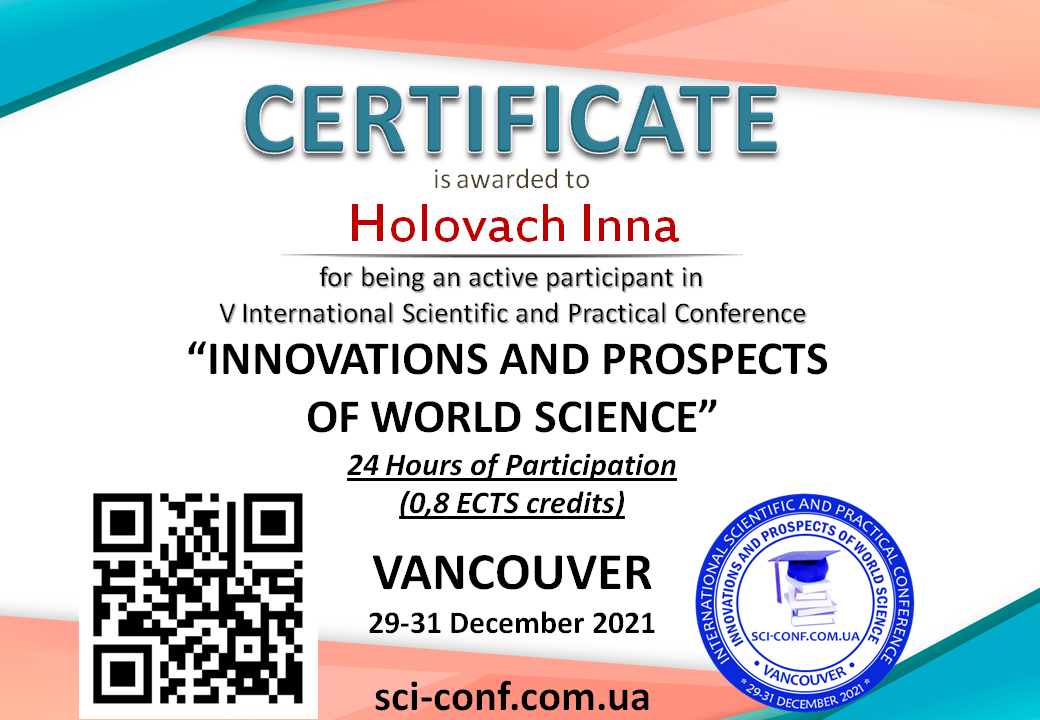 | 11586 | 2 Міжнародна науково-практична конференція «Modern Trends in the Development of Economy, Technology and Industry» | ХАРАКТЕРИСТИКА СПОРТИВНО-ТУРИСТИЧНОЇ ДІЯЛЬНОСТІ ШКОЛЯРІВ | Торонто, Канада |