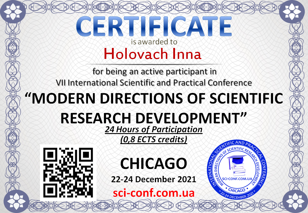 | 7744 | VII Міжнародна науково-практична конференція “MODERN DIRECTIONS OF SCIENTIFIC RESEARCH DEVELOPMENT | ОСОБЛИВОСТІ ФУНКЦІОНУВАННЯ ТУРИСТИЧНОЇ ДЕСТИНАЦІЇ В УКРАЇНІ НА ПРИКЛАДІ АСКАНІЯ - НОВА | Чикаго, США |