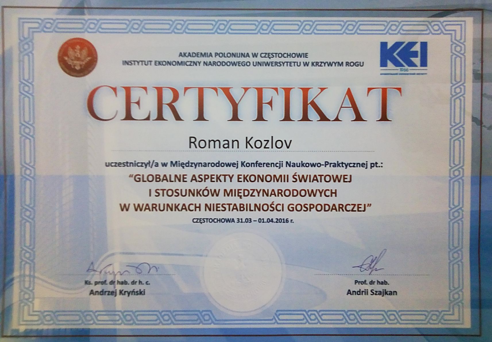 | 1823 | Globalne aspekty Ekonomii Śviatowej i Stosunków Międzynarodowych w warunkach niestabilności gospodarczej | Educational hyperbook, or Should there be the references in textbook | Ченстохова, Польща |