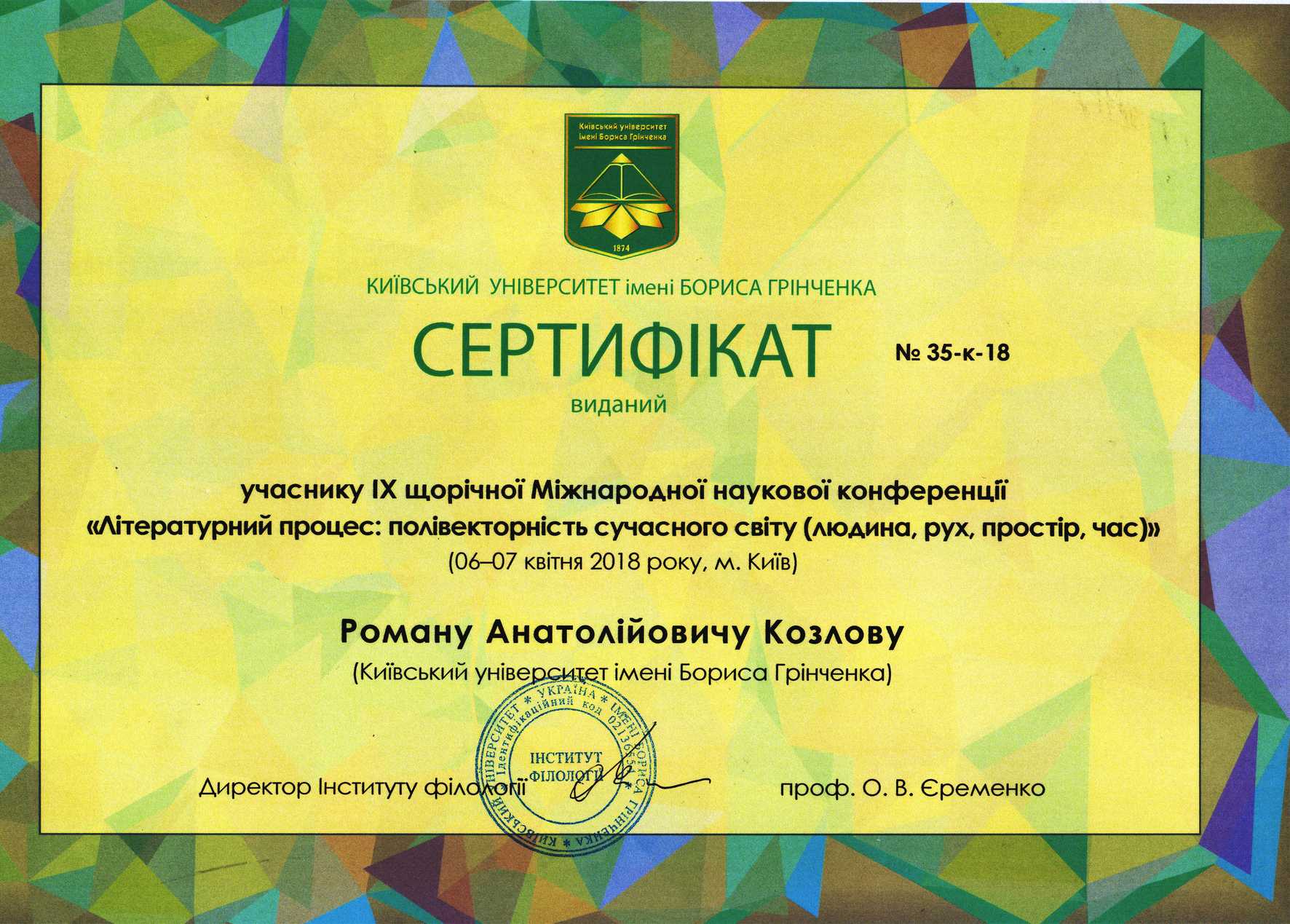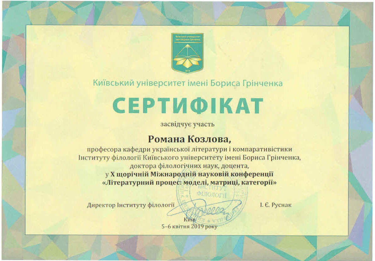 | 3071 | Літературний процес: полівекторність сучасного світу (людина, рух, простір, час) | Концепт «художня структура» в дискусіях Мистецького українського руху | Київський університет імені Бориса Грінченка |