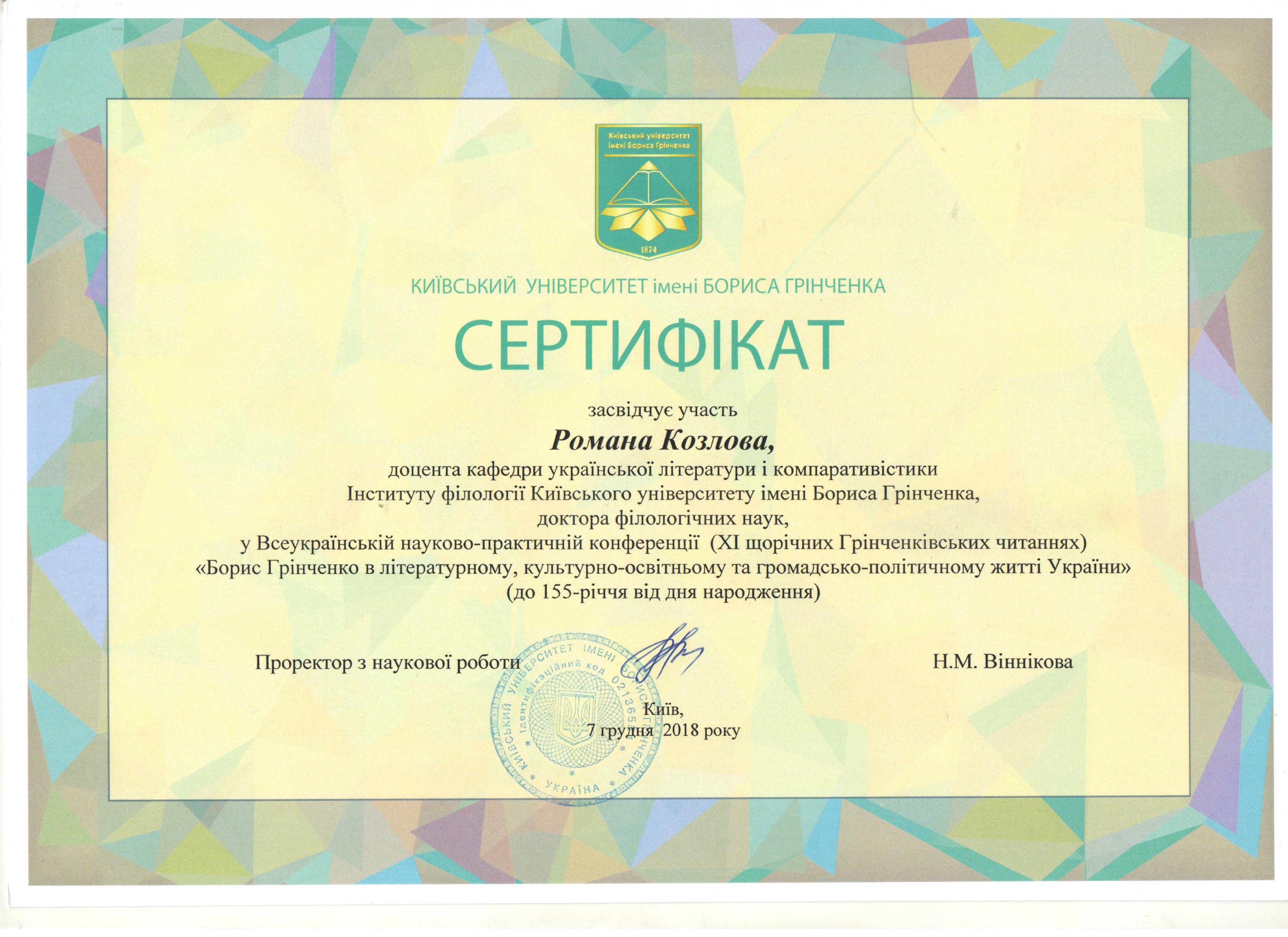 | 9285 | Круглий стіл "Лідер українства у Серці України" | Наукова біографія Бориса Грінченка | Київський університет імені Бориса Грінченка | document.pdf | |