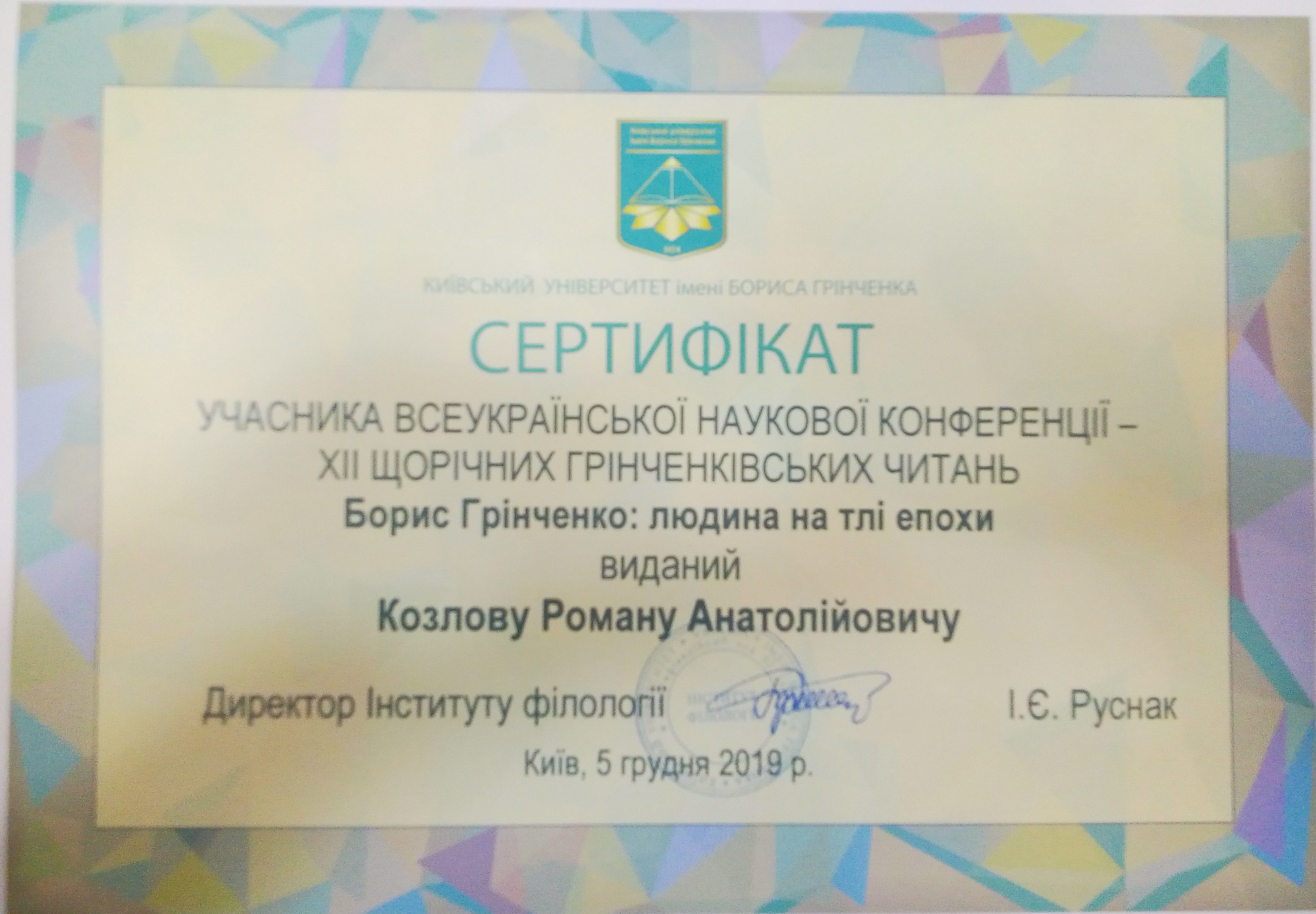 | 217 | Факультет української філології, культури і мистецтва | Кафедра української літератури, компаративістики і грінченкознавства | 22.3 | 1 | 2025 | https://www.researchgate.net/profile/Roman_Kozlov5 |