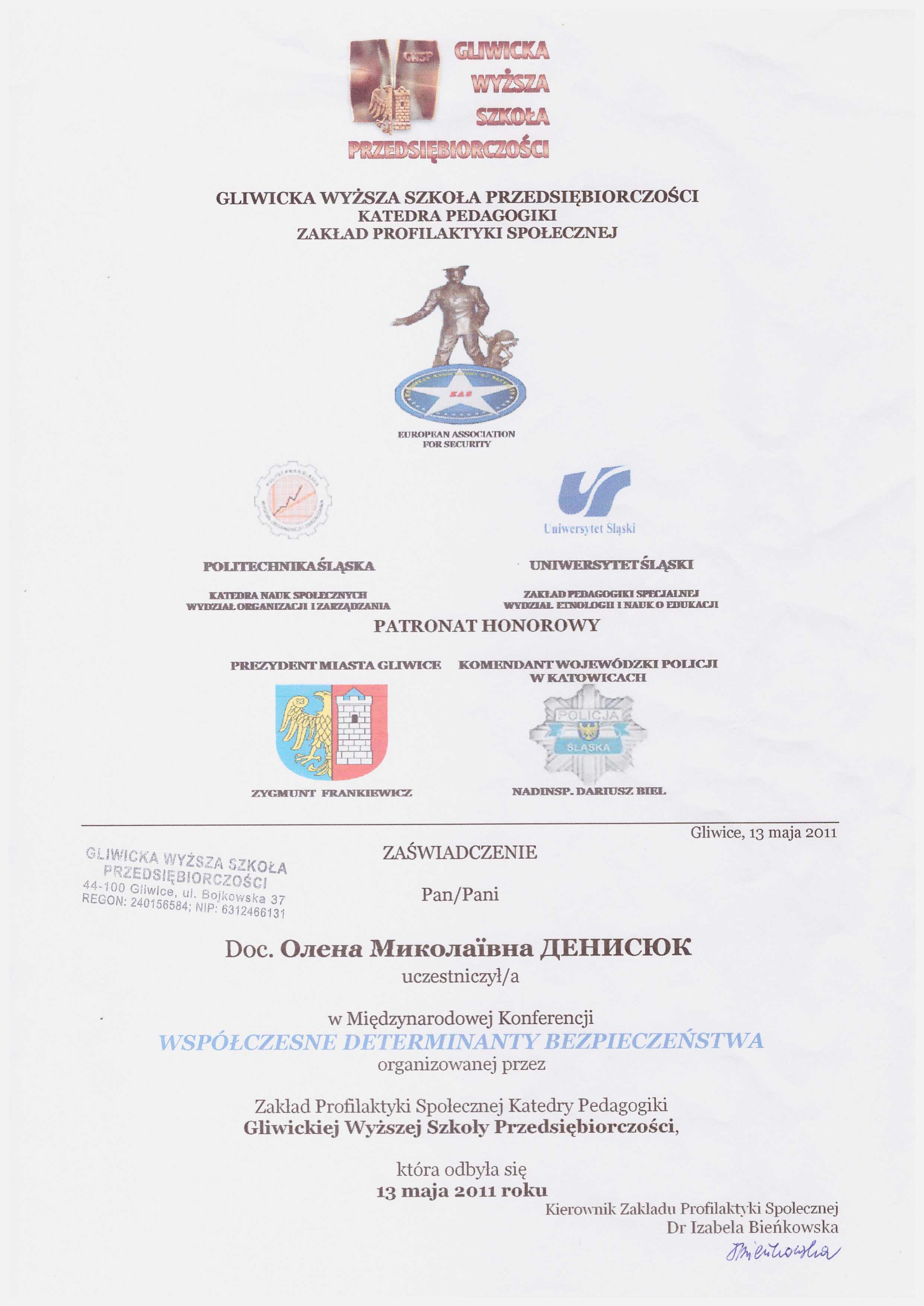 | 184 | Міжнародна конференція з інформаційної безпеки | Організація безпечного середовища (в умовах сім’ї). | Глівіца, Польща |