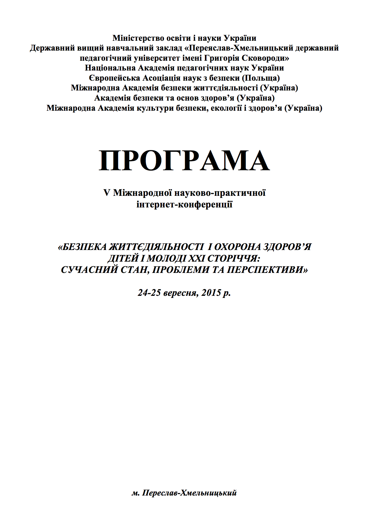 | 187 | V Міжнародна науково-практична інтернет-конференція «БЕЗПЕКА ЖИТТЄДІЯЛЬНОСТІ І ОХОРОНА ЗДОРОВ’Я ДІТЕЙ І МОЛОДІ ХХІ СТОРІЧЧЯ: СУЧАСНИЙ СТАН, ПРОБЛЕМИ ТА ПЕРСПЕКТИВИ» | ПІДГОТОВКА МАЙБУТНІХ СОЦІАЛЬНИХ ПЕДАГОГІВ ДО ЗДІЙСНЕННЯ МЕНТОРСЬКОЇ ПІДТРИМКИ ДІТЕЙ | м. Переслав-Хмельницький |