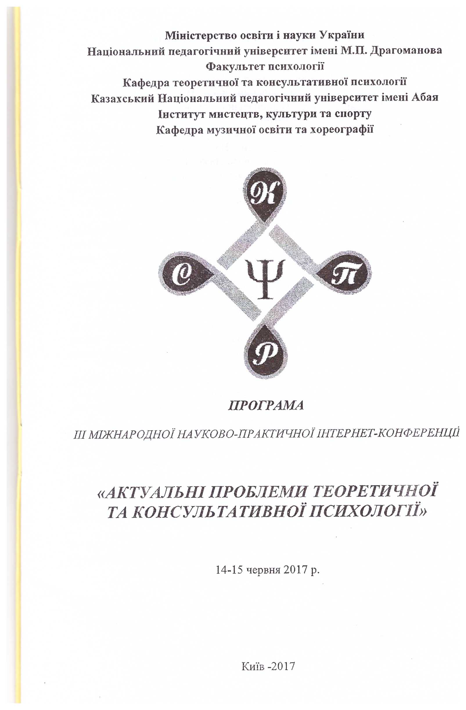 | 1995 | Актуальні проблеми теоретичної та консультативної психології | Соціальна підтримка сімей з дітьми, які перебувають в складних життєвих умовах | Київ |