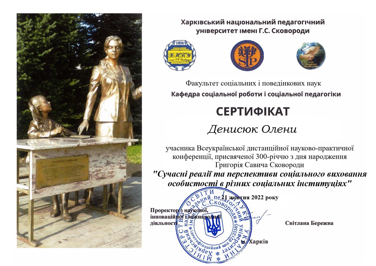 | 8380 | IV Всеукраїнської науково-практичної конференції «Соціальна підтримка сім'ї та дитини у соціокультурному просторі громади» | Формування у старшокласників навичок безпечного спілкування в соціальних мережах | м. Суми | document.pdf | |