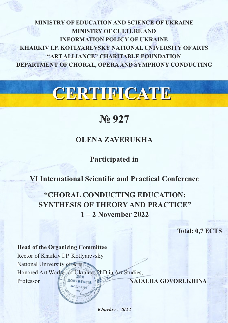 | 84 | Факультет музичного мистецтва і хореографії | Кафедра академічного та естрадного вокалу | Всеукраїнські конкурси | V Всеукраїнський вокальний фестиваль - конкурс «Prodis Vocal Fest» | Україна, Київ | 2024 | Заверуха.pdf |
