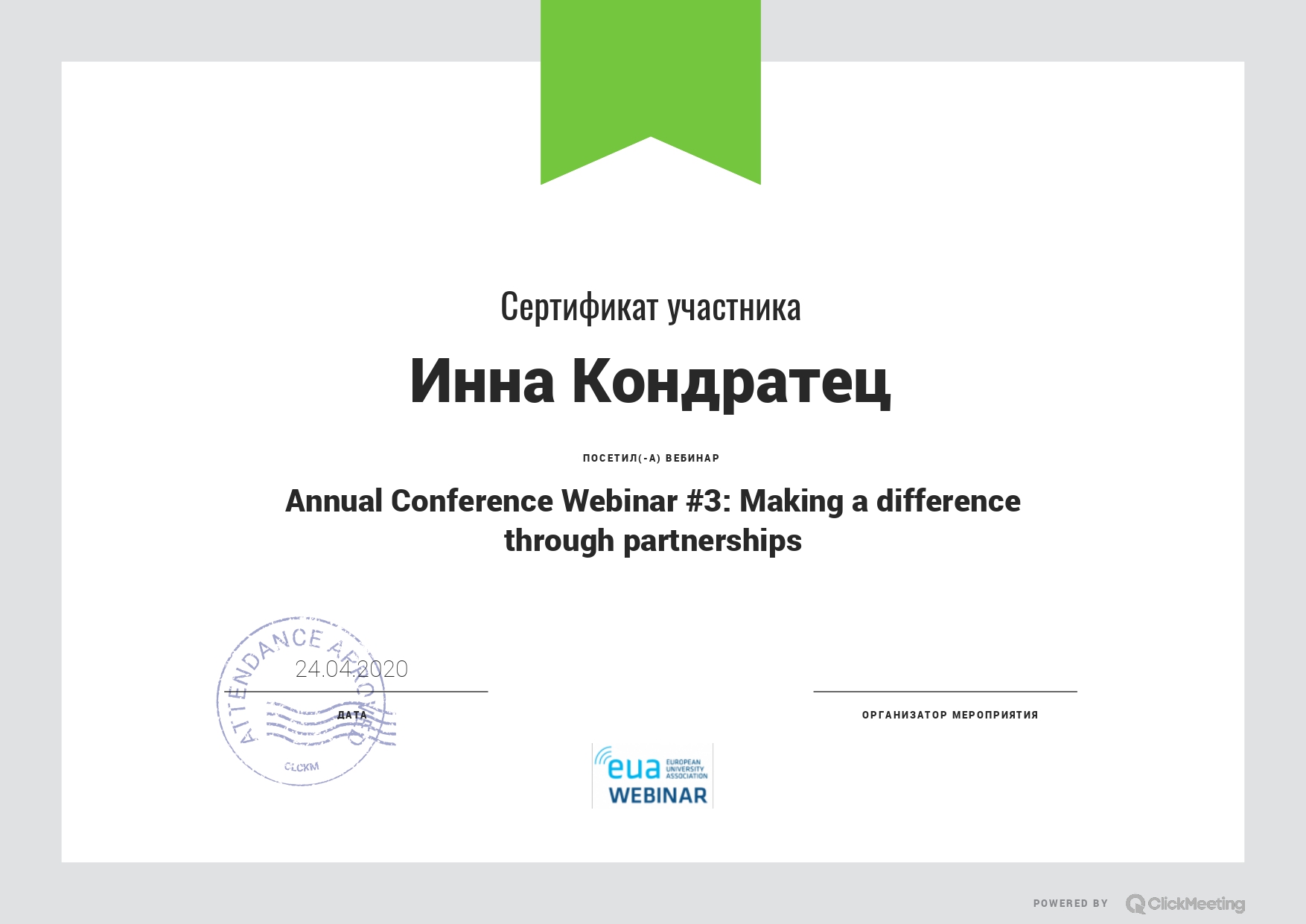 | 5335 | Annual Conference Webinar #3: Making a difference through partnerships | - | Брюсель |