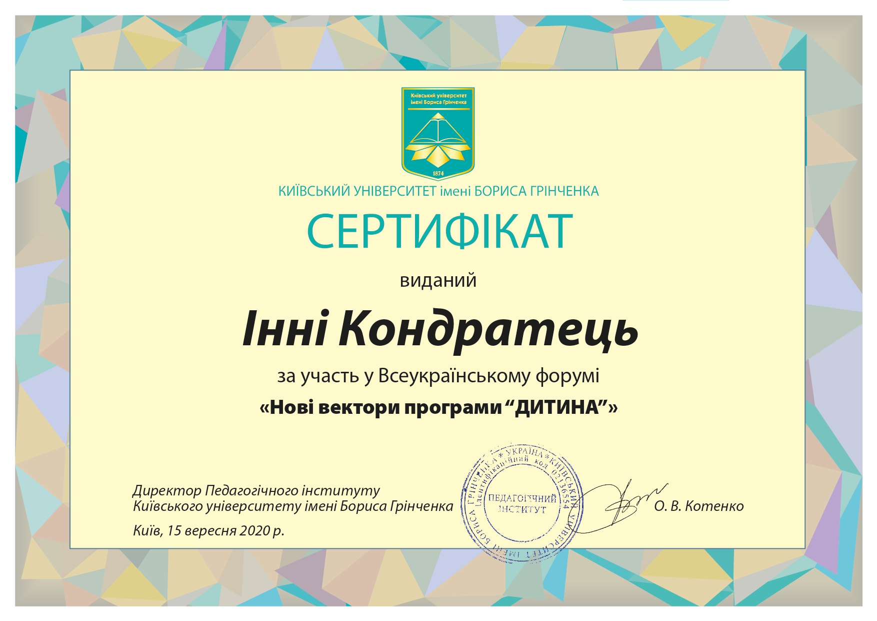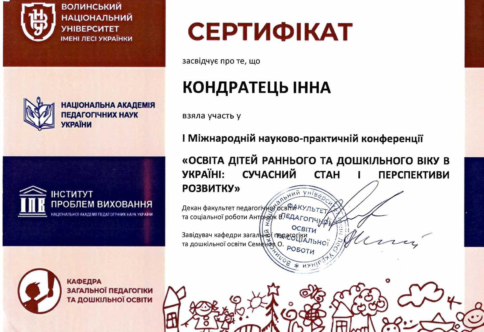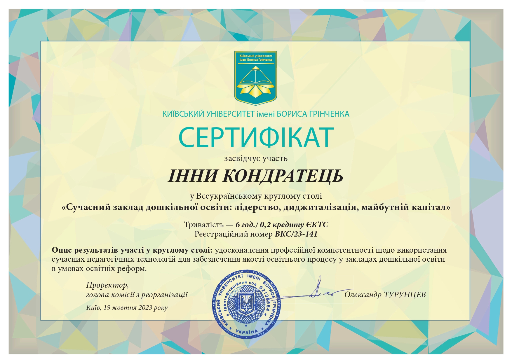 | 9582 | Всеукраїнський круглий стіл «Сучасний заклад дошкільної освіти: лідерство, диджиталізація, майбутній капітал» | учасник | м.Київ |