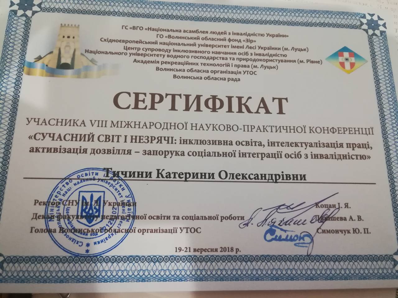 | 3292 | VIII Міжнародна науково-практична конференція "Сучасний світ і незрячі: інклюзивна освіта, інтелектуалізація праці, активізація дозвілля - запорука соціальної інтеграції осіб з інвалідністю" | Тактильний квест у роботі з дітьми з порушеннями зору та мовленя | м.Луцьк |