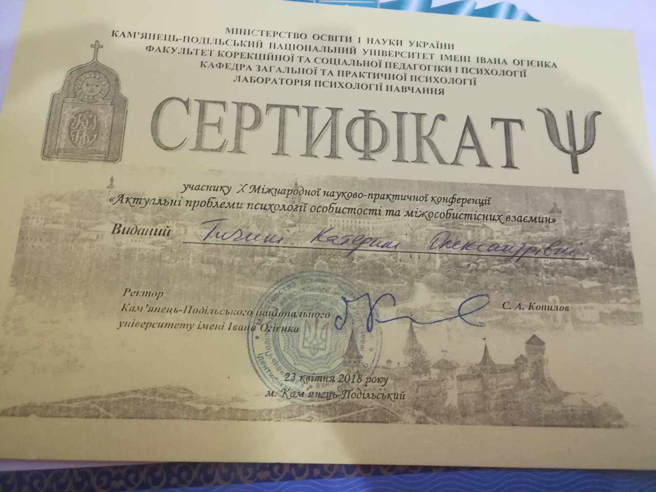 | 3293 | Х Міжнародна науково-практична конференція "Актуальні проблеми психології особистості та міжособистісних взаємин" | Сучасні погляди на проблему міжособистісних стосунків у сім’ях, що виховують дітей дошкільного віку з порушеннями мовлення | м.Кам'янець-Подільський |