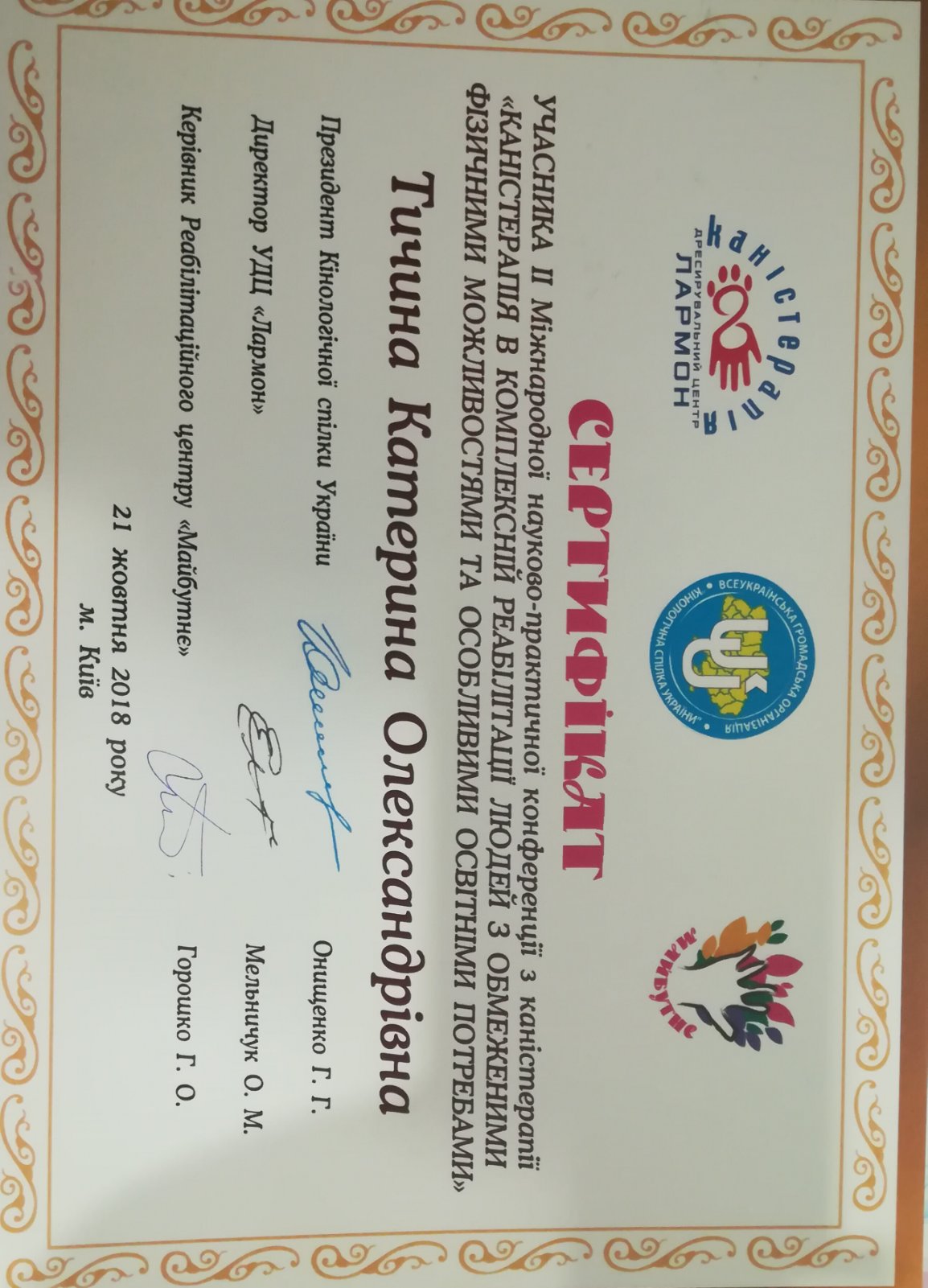 | 4516 | ІІ Міжнародна науково-практична конференція з каністерапії \ | Участь у панельній дискусії та тренінгових заходах | Київ |