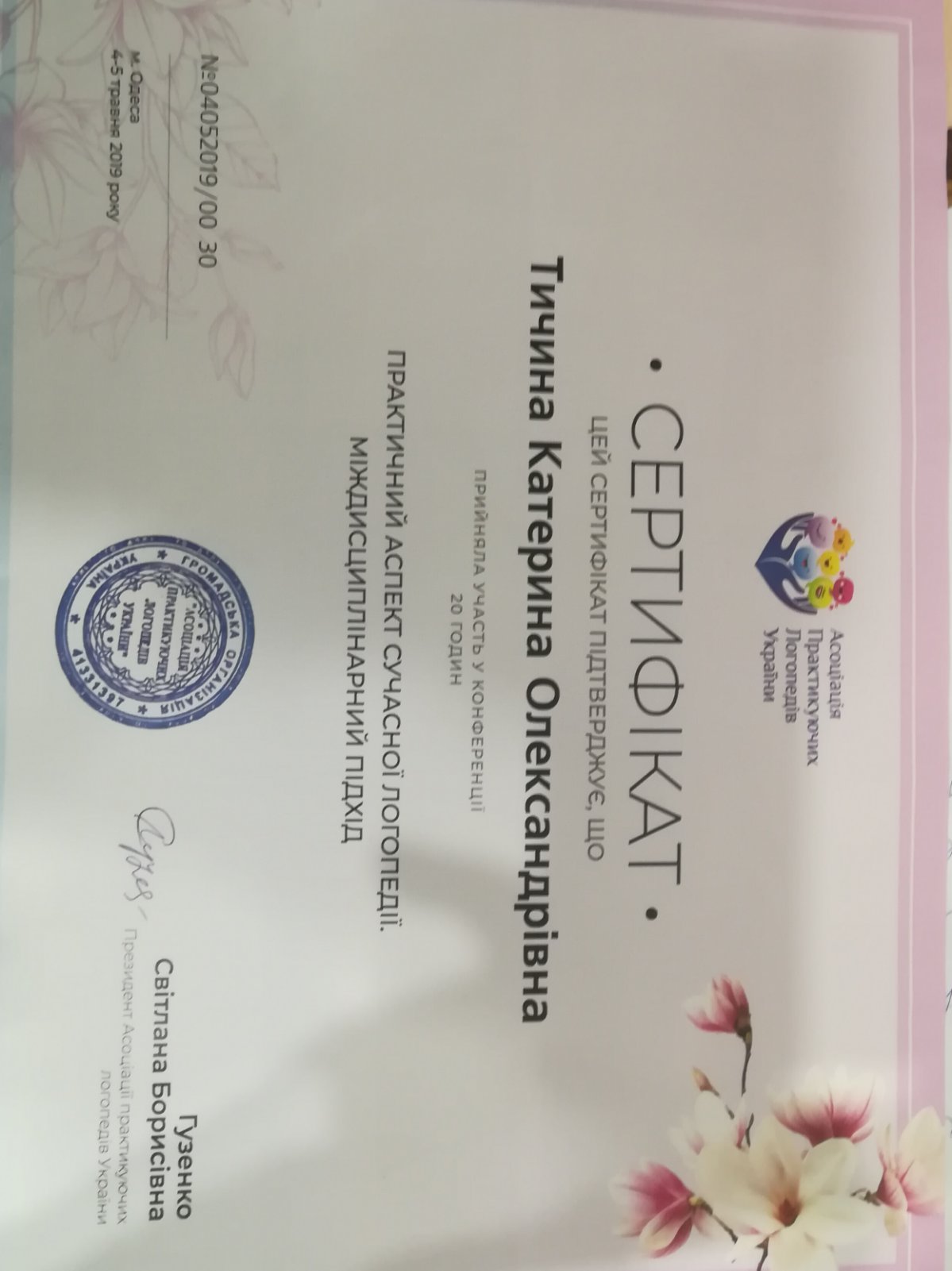 | 4518 | Практичний аспект сучасної логопедії. Міждисциплінарний підхід | участь у тренінгових заходах | Одеса |