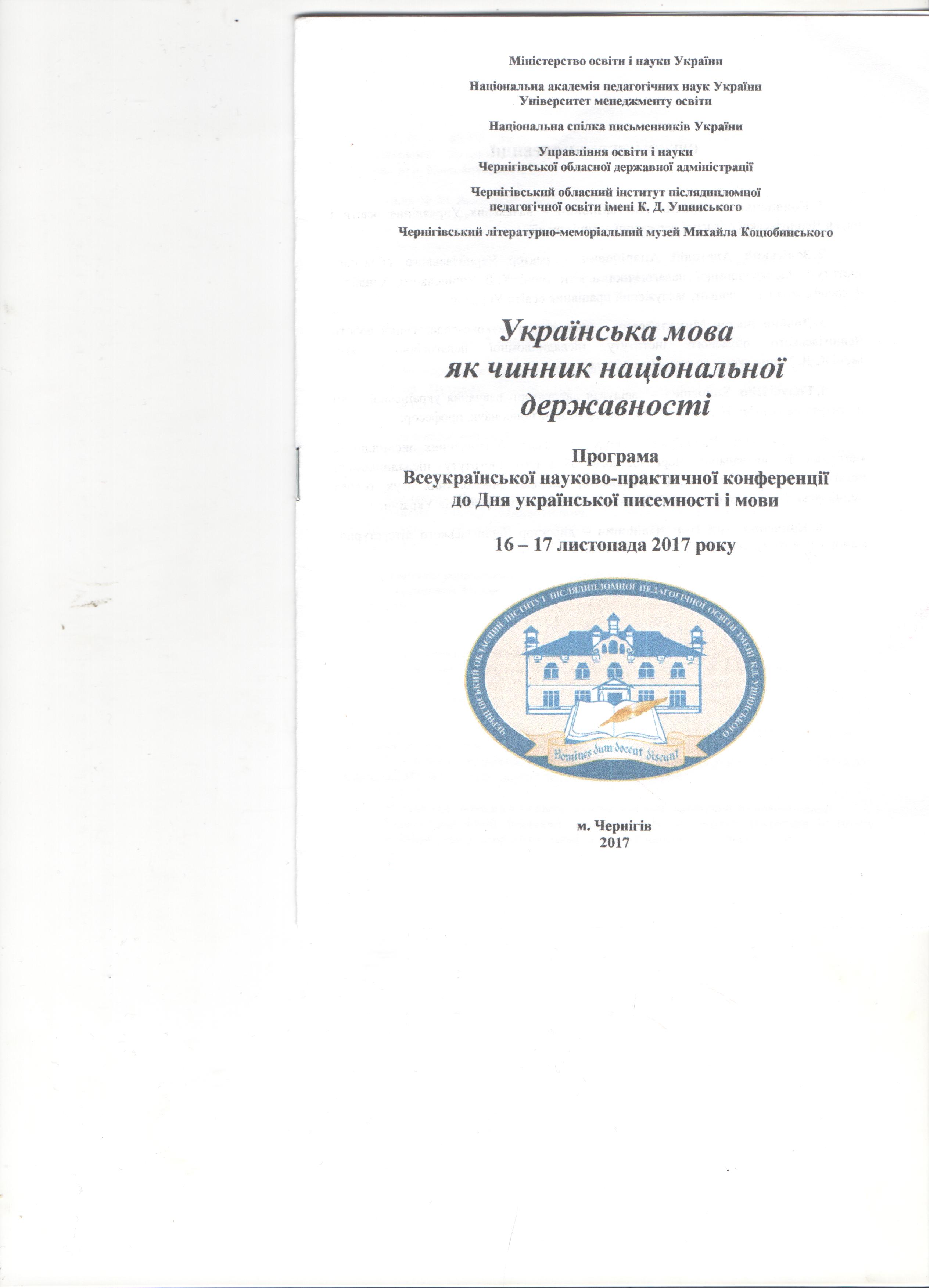 | 2511 | Українська мова як чинник національної державності | Подвижницька праця Пилипа Морачевського | м. Чернігів, Чернігівський обласний інститут післядипломної педагогічної освіти |