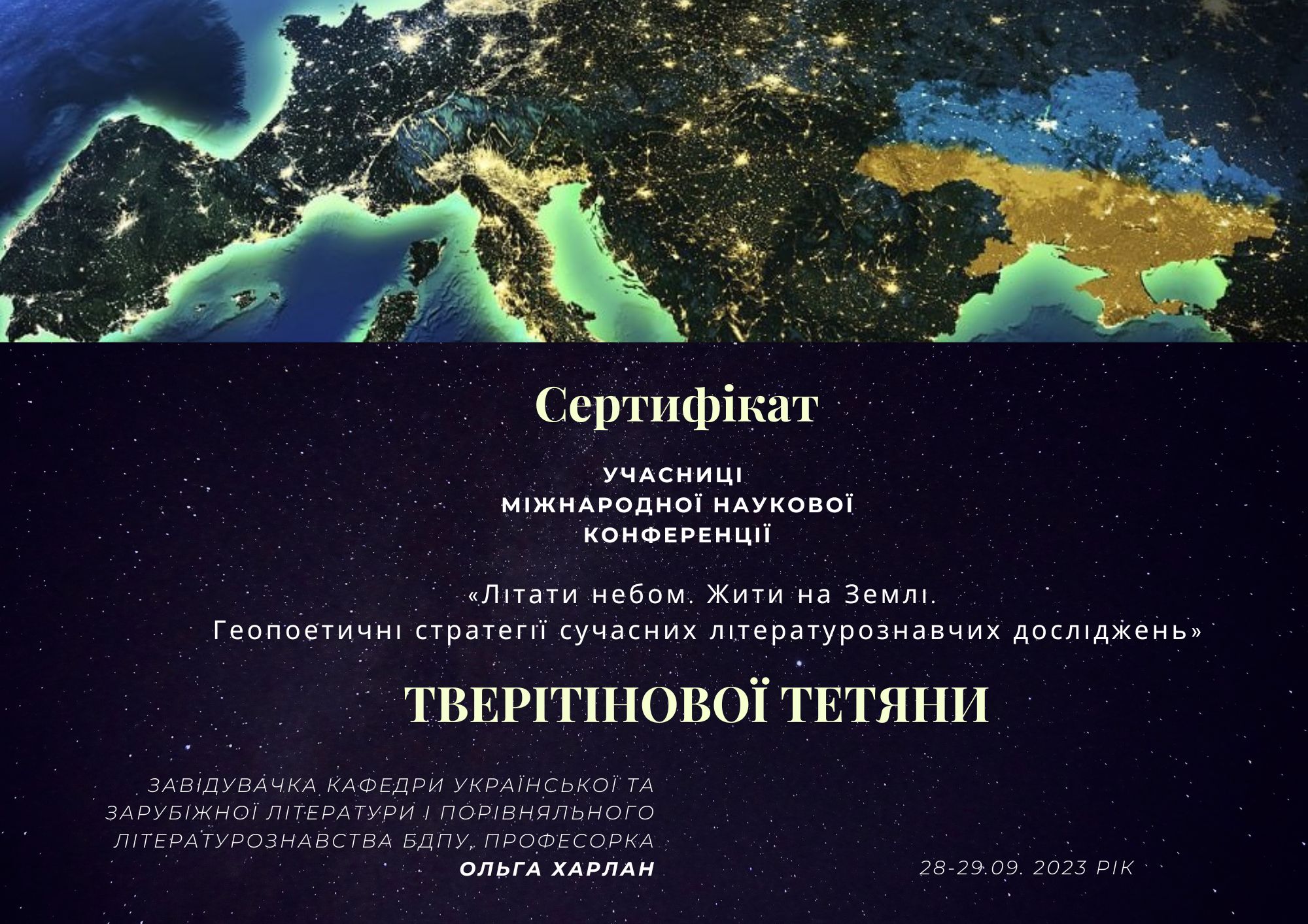 | 34 | Факультет української філології, культури і мистецтва | Кафедра світової літератури | 30.8 | 1 | 2025 | https://www.researchgate.net/profile/Tetiana_Tveritinova |