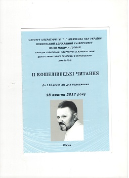 | 2692 | ІІ Кошелівецькі читання. До 110-річчя від дня народження. | Нова інтерпретація життя генія або вульгарний фемінізм? Про п'єсу Ірени Салецької-Коваль \ | Ніжинський державний університет імені Миколи Гоголя. Центр гуманітарної співпраці з українською діаспорою. |