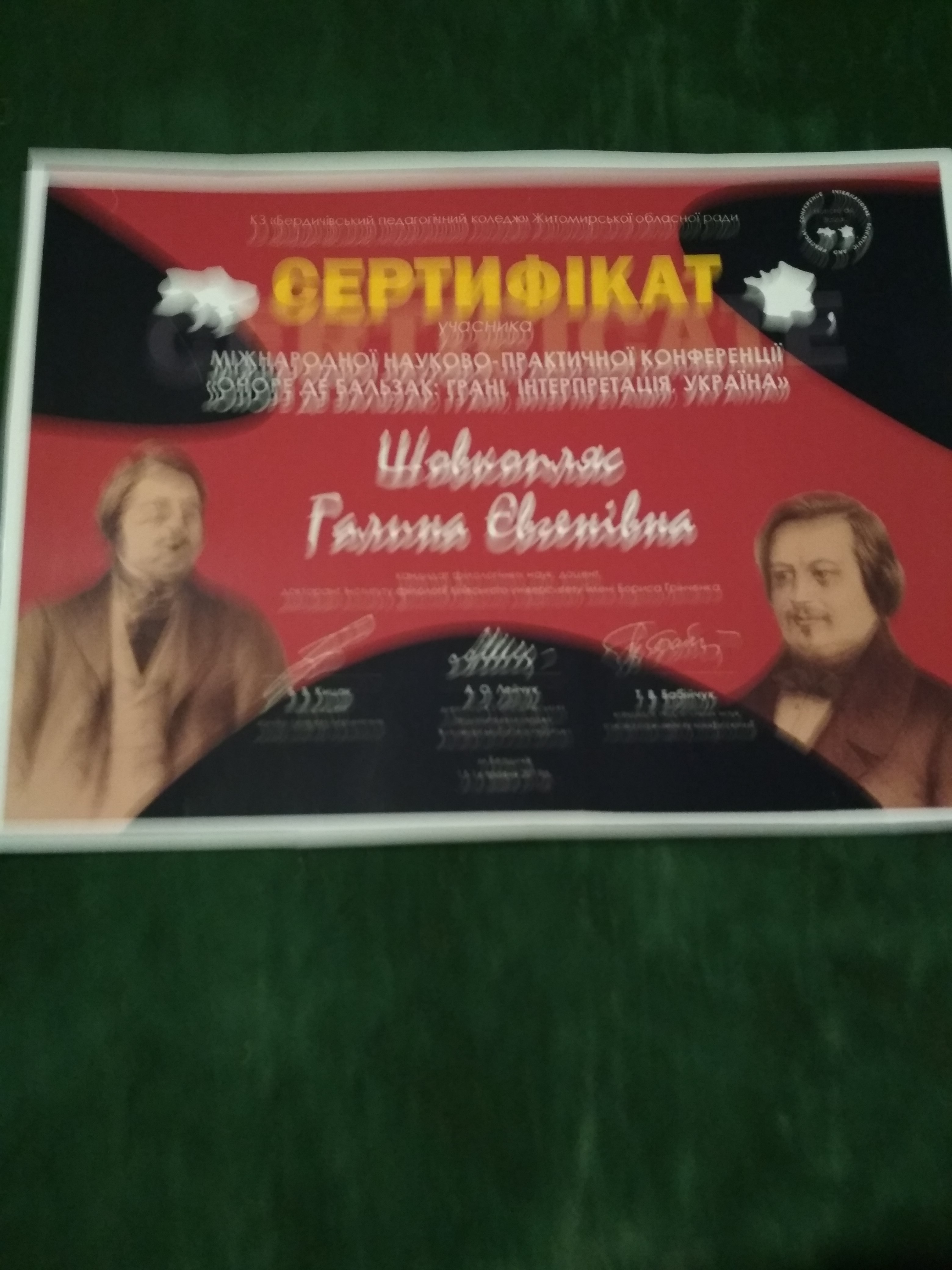 | 4239 | Міжнародна науково-практична конференція "Оноре де Бальзак: грані,інтерпретація,Україна" | Бальзак утаємничений або Серафєтичний андрогин у постмодерному проекті. | Житомирська обласна державна адміністрація .комунальний заклад "Бердичевський педагогічний коледж" |