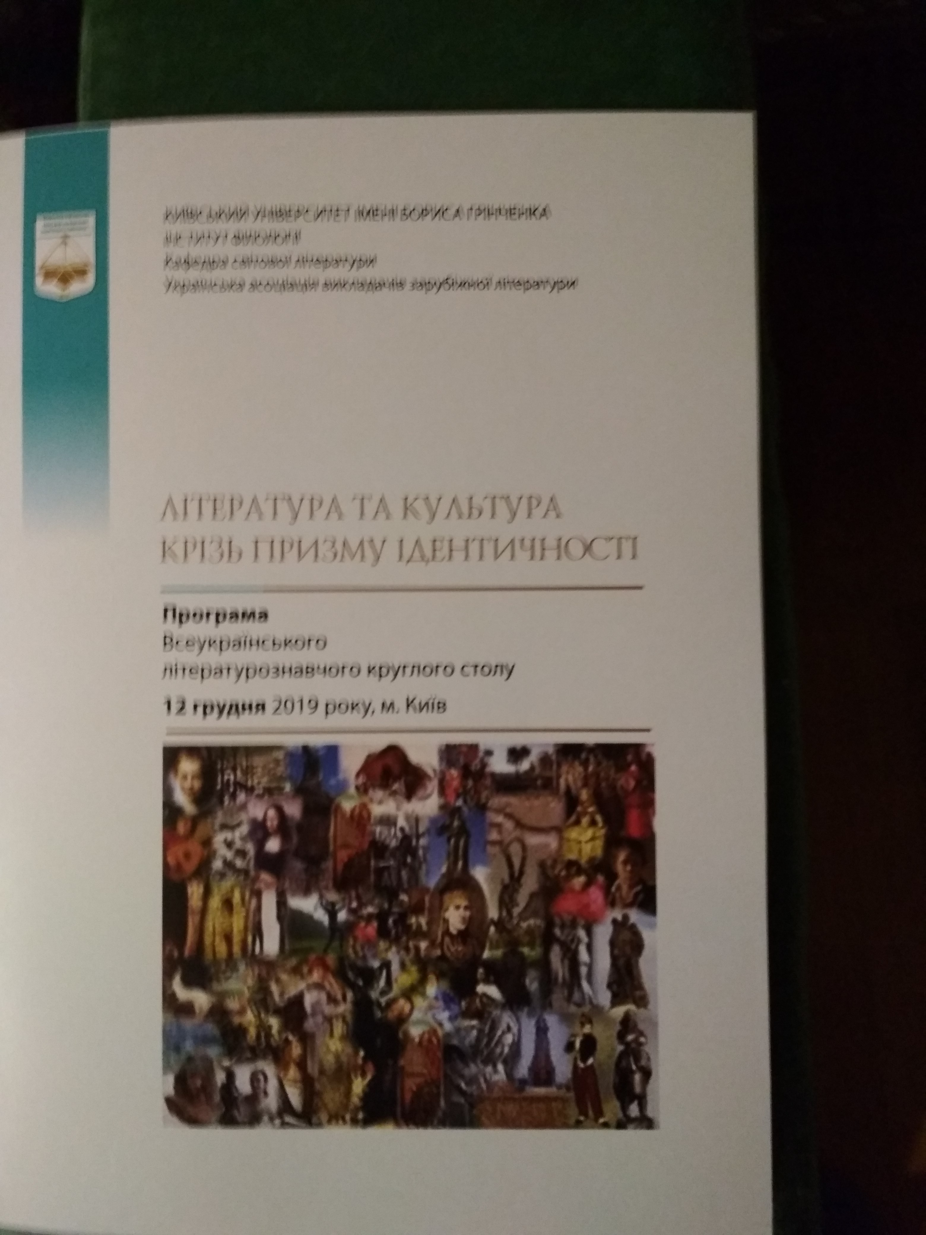 | 5013 | Всеукраїнський круглий літературознавчий стіл "Література та культура крізь призму ідентичності" | Міф Європи як вимір національної ідентифікації в україїнській діаспорній драматургії доби МУРу. | Київський університет імені Бориса Грінченка |