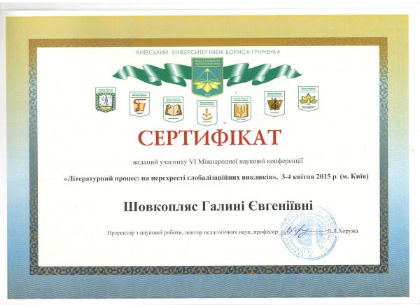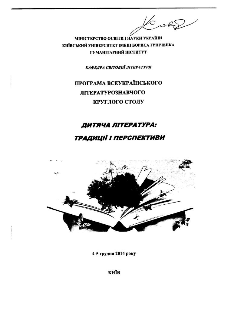 | 8709 | Всеукраїнський ( з міжнародною участю) круглий літературознавчий стіл. | Українська література в контексті світової. | Київський університет імені Бориса Грінченка | document.pdf | |