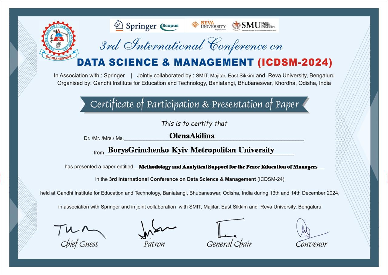 | 11448 | 3rd International Conference on Data Science & Management (ICDSM-2024) | Methodology and Analytical Support for the Peace Education of Managers | Gandhi Institute for Education and Technology, Baniatangi, Bhubaneswar, Odisha, India |