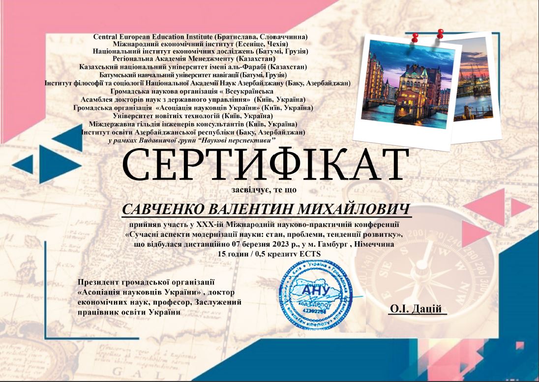 | ID | Назва | Тема доповіді | Місце проведення | Документ, що засвідчує | Дата проведення |