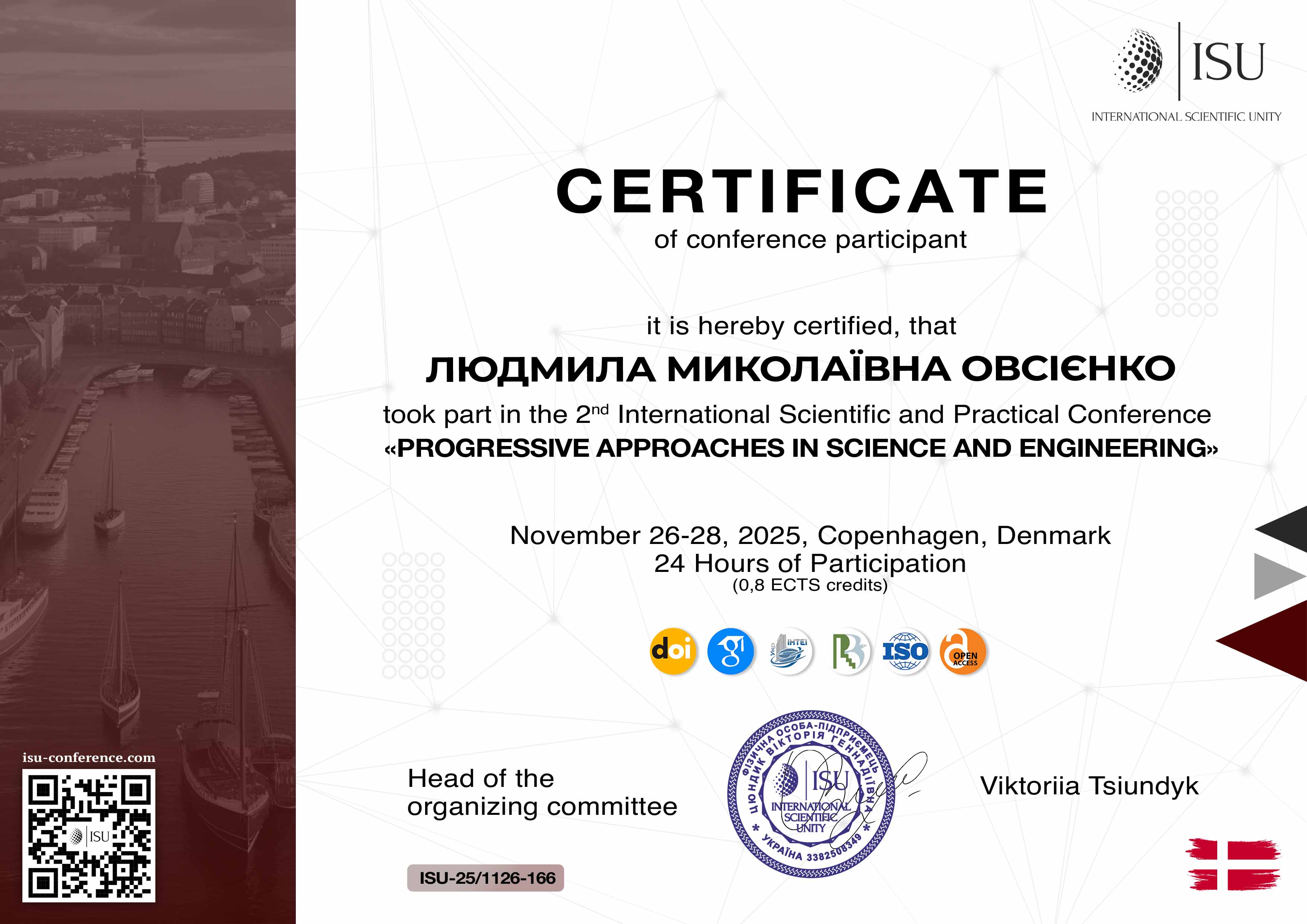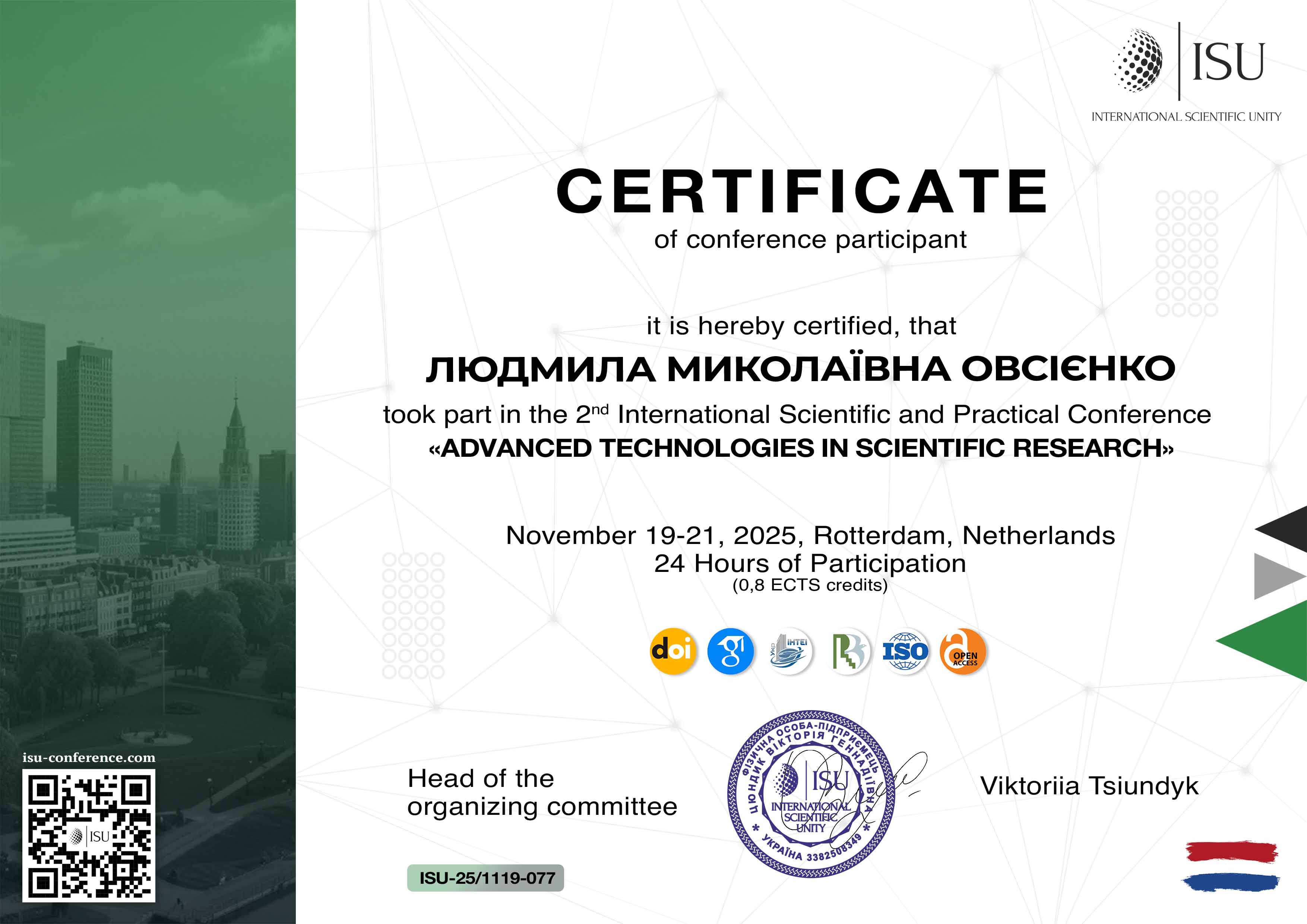 | 12542 | ІІІ Міжнародна науково-практична конференція «Innovations in Science: From Theoretical Foundations to Practical Impact» | «Еволюція стилю українських журналістських текстів під впливом соціальних мереж» | Антверпен, Бельгія |