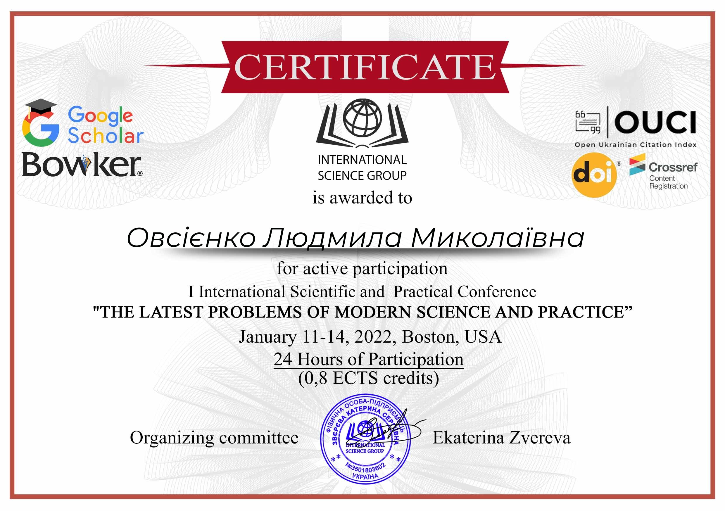| 8389 | The I International Science Conference «The latest problems of modern science and practice» | "Емоційний інтелект та його вплив на формування фахової компетентності майбутнього журналіста" | Boston, USA |