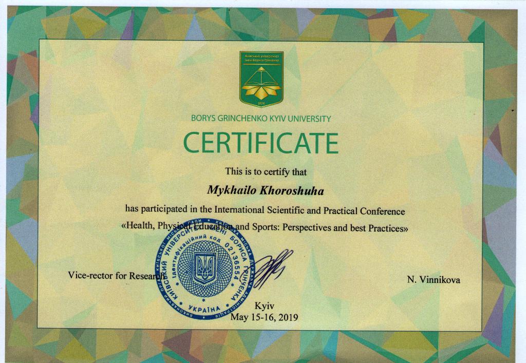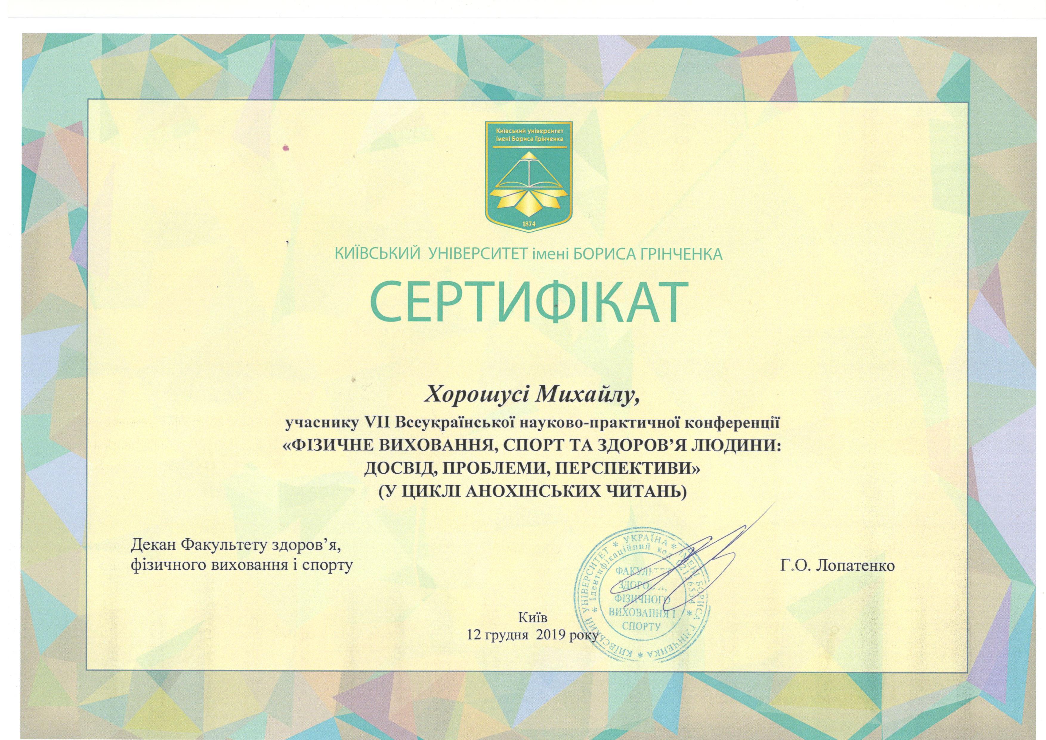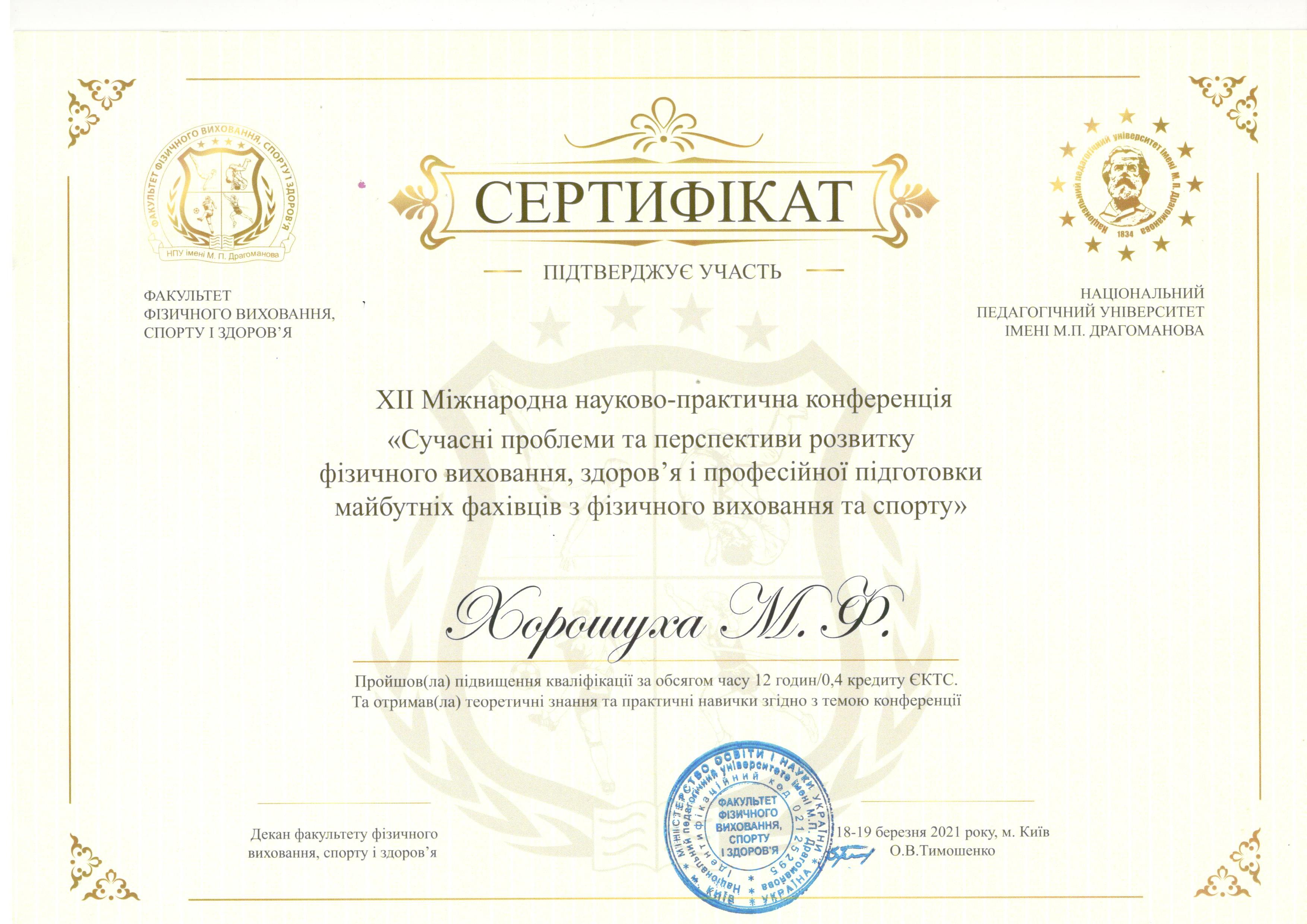 | 70 | Кафедра фізичної реабілітації та біокінезіології | AAF-8011-2019 | 2 | 1 | 2021 | https://publons.com/researcher/3250963/mykhailo-khoroshukha/ |