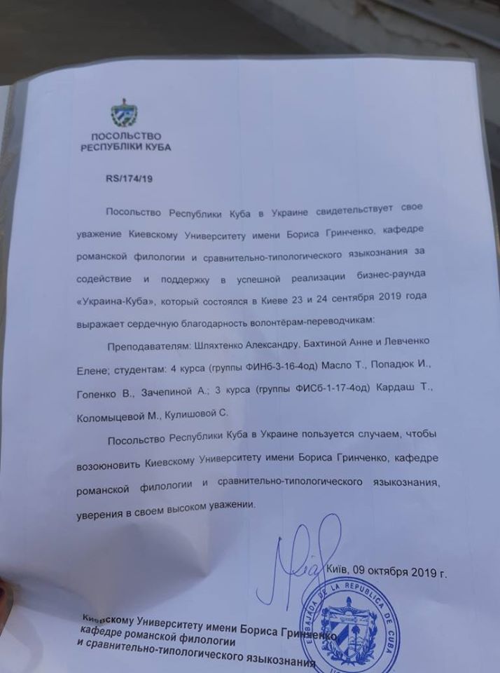 вересень 2018 - викладач іспанської мови кафедри Романських мов та порівняльно-типологічного мовознавства Київського Університету імені Бориса Грінченко