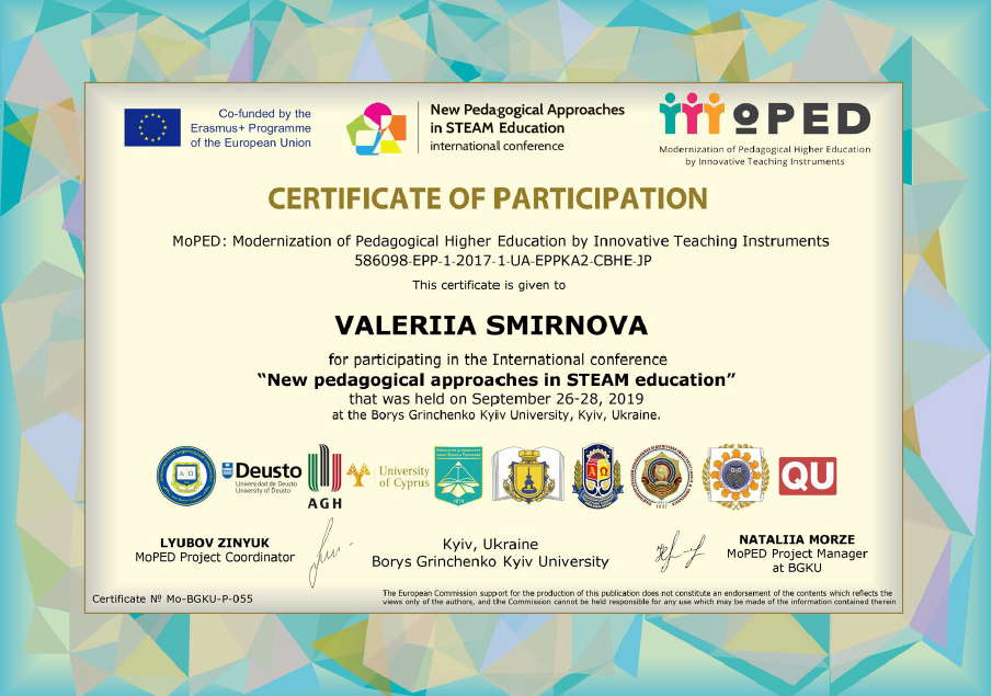| 4756 | International Conference «New Pedagogical Approaches in STEAM Education» | International Conference «New Pedagogical Approaches in STEAM Education» | Borys Grinchenko Kyiv University |