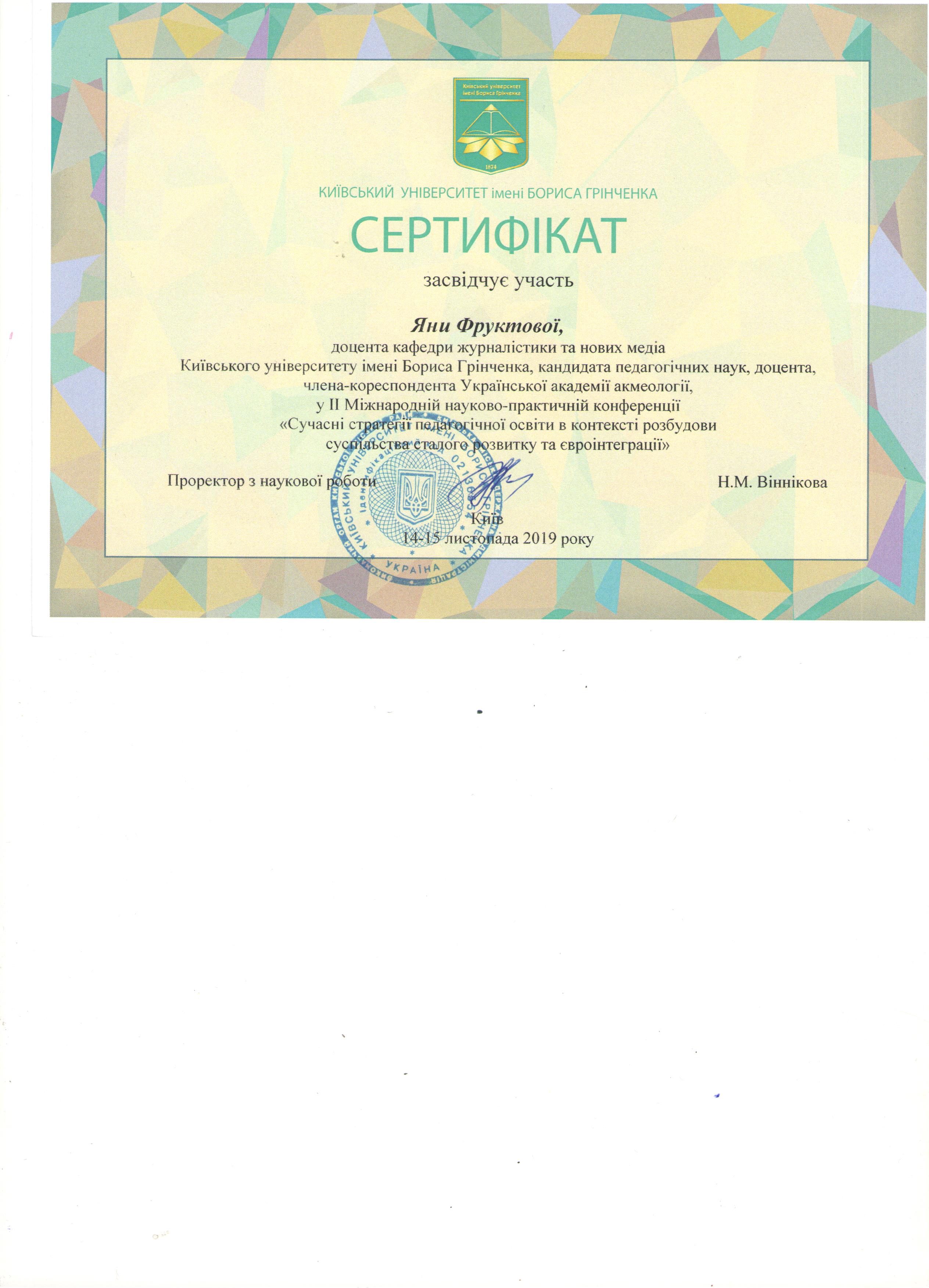 | 829 | 'Комунікаційні стратегії сучасної школи' | Педагогічна складова професійної підготовки фахівців медіасфери | м. Київ |