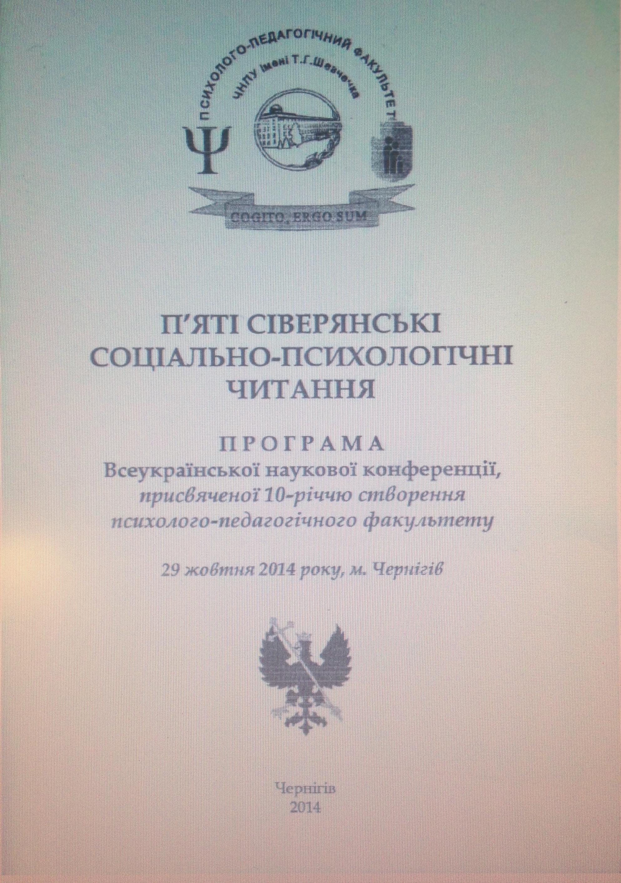 | 824 | П'яті сіверянські соціально-психологічні читання | Самопізнання як базовий конструкт формування професійної компетенції фахівців з журналістики та інформації | Чернігівський національний педагогічний університет імені Т.Г. Шевченка |