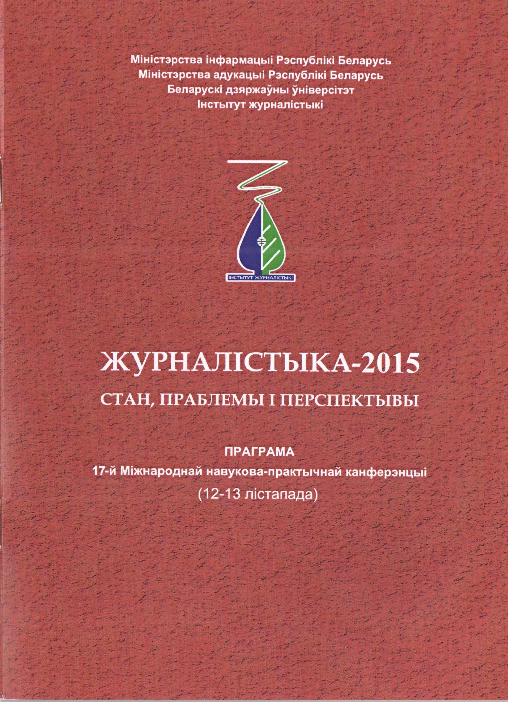 | 825 | Журналістыка - 2015. Стан, праблемы і перспектывы. | Проектирование образовательных программ профессиональной подготовки журналистов на основе компетенстностного подхода | Беларускі дзяржауны універсітэт. Інстытут журналістыкі |