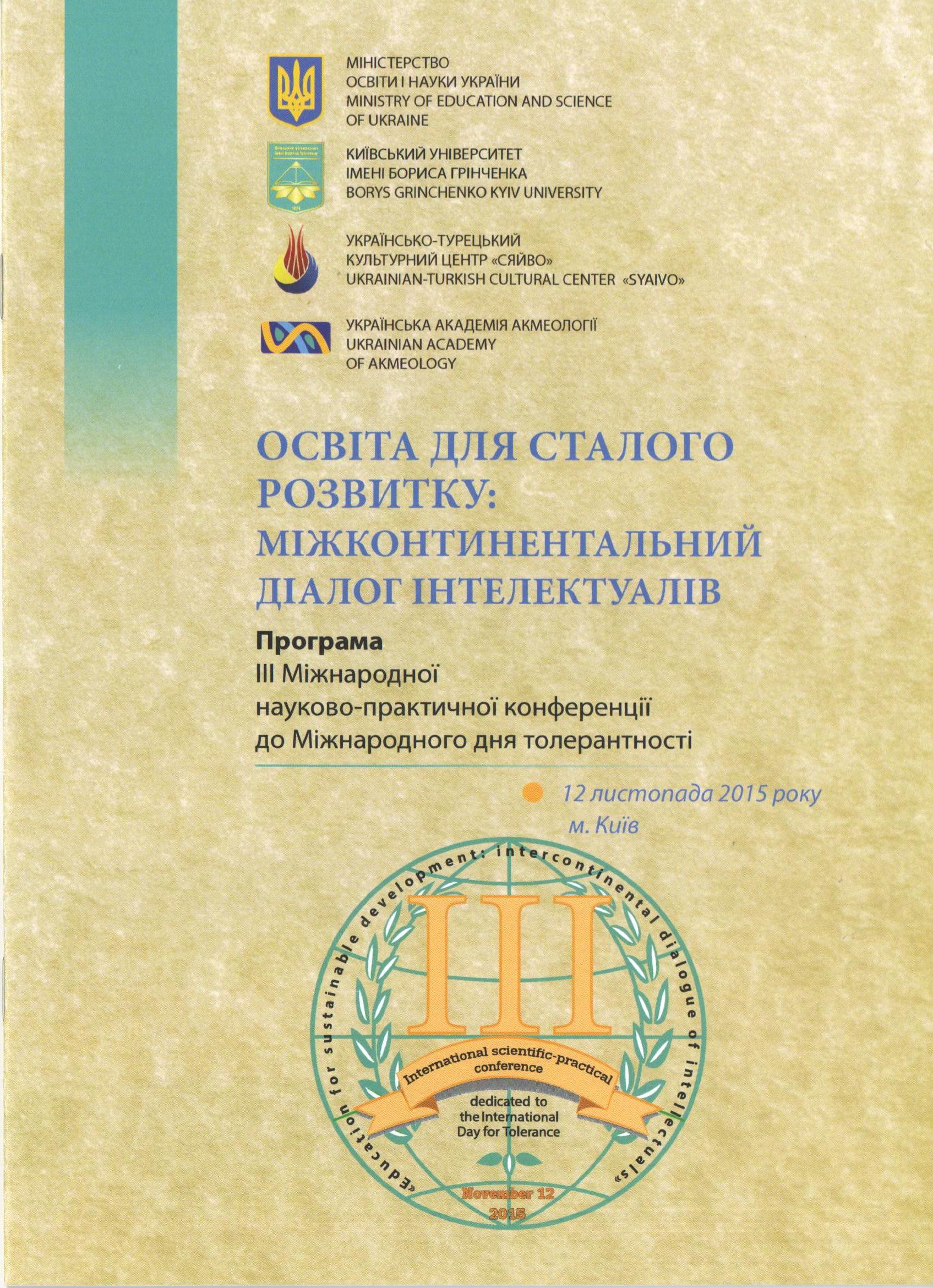 | 826 | Освіта для сталого розвитку: міжконтинентальний діалог інтелектуалів | Толерантність як основа психограми фахівців з журналістики | Київський університет імені Бориса Грінченка |