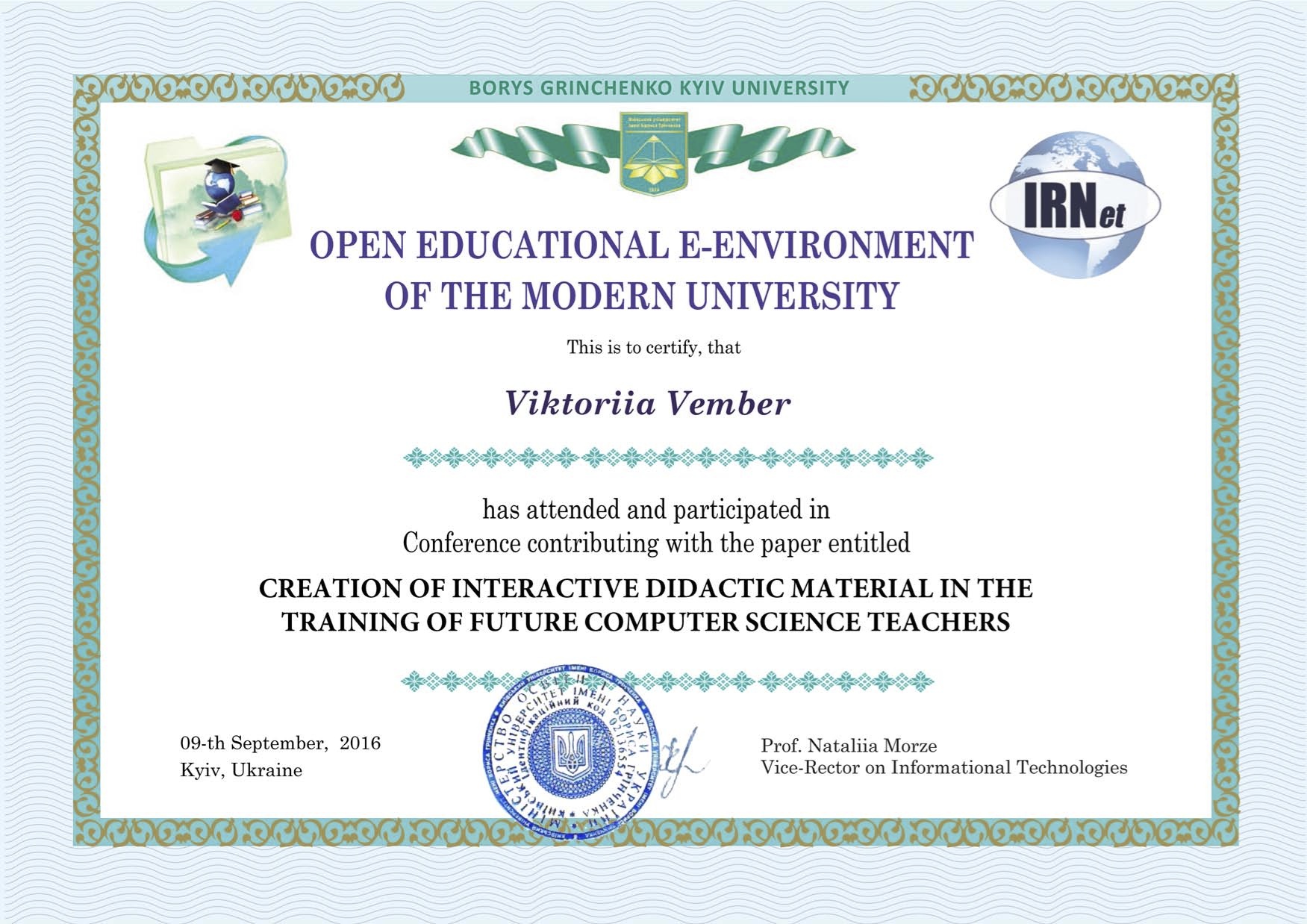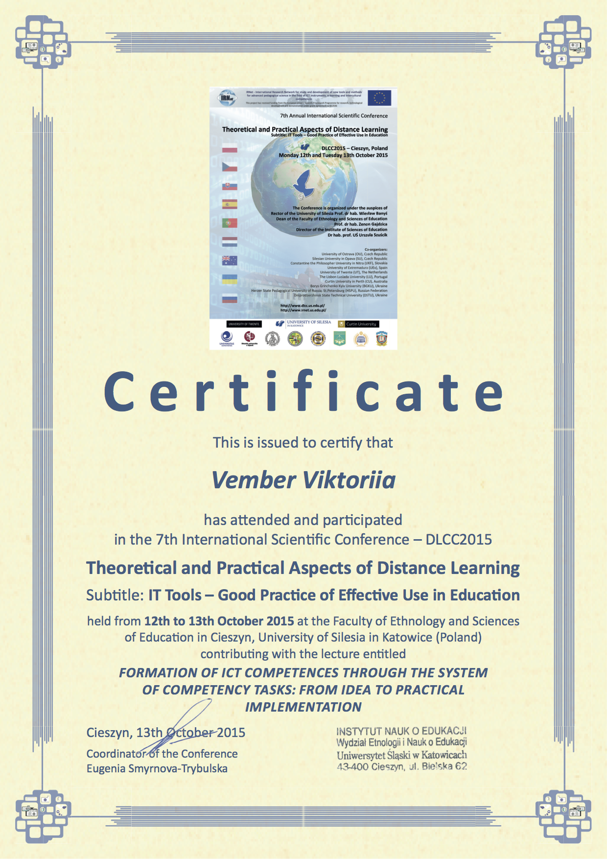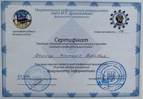 | 69 | Власенко Юлія Анатоліївна | VI | Інформаційно-комунікаційні технології в освіті | I | 2018 |