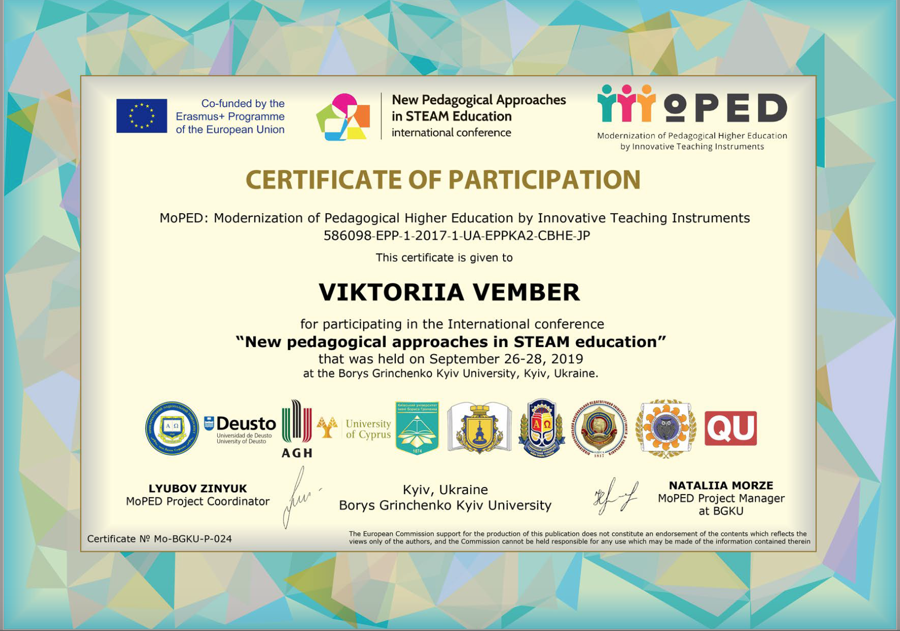 | 40 | Еразмус К2 | 586098-EPP-1-2017-1-UA-EPPKA2-CBHE-JP | Європейська Комісія | «Модернізація педагогічної вищої освіти з використання інноваційних інструментів викладання» (MoPED) | 1.10.2017-14.04.2021 р. | Учасник проекту |