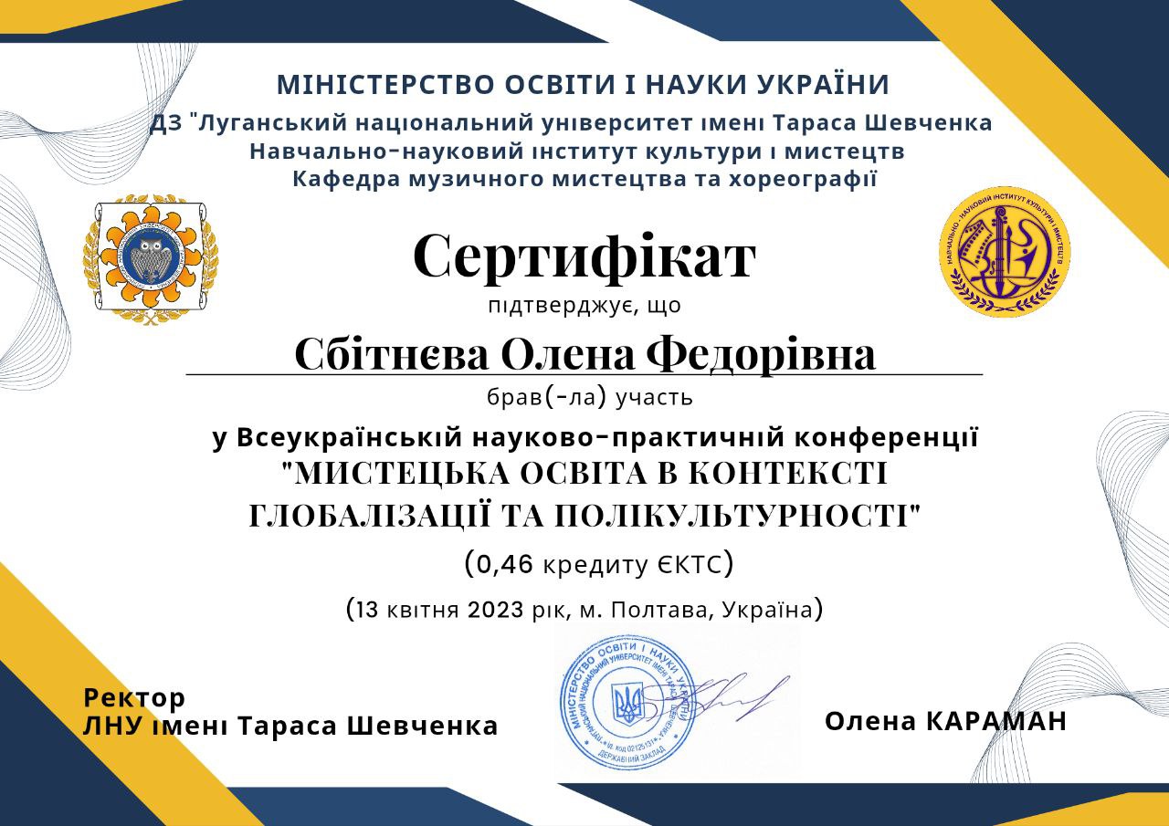 | 49889 | Творча діяльність доктора педагогічних наук, професора Сбітнєвої Людмили Миколаївни |