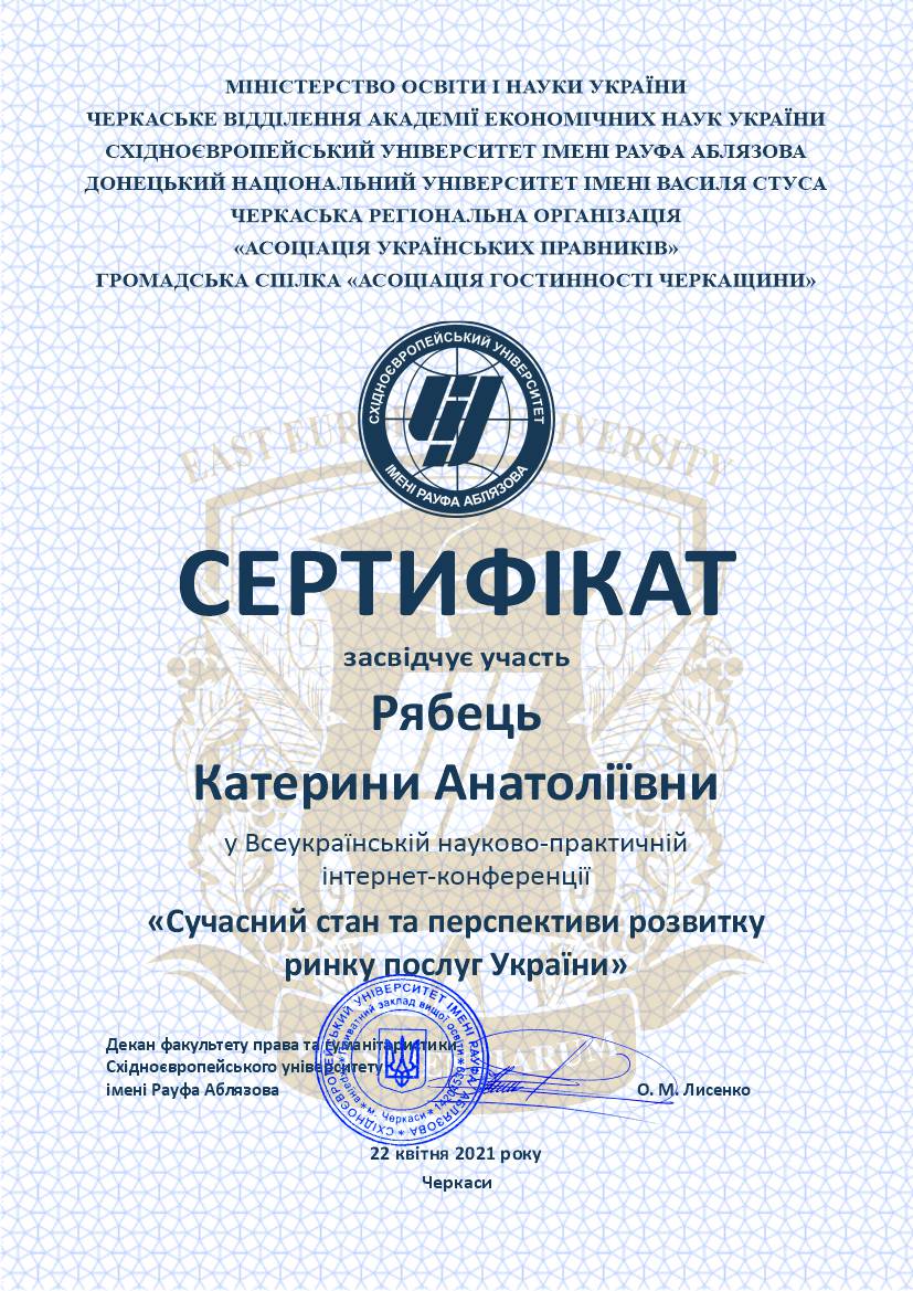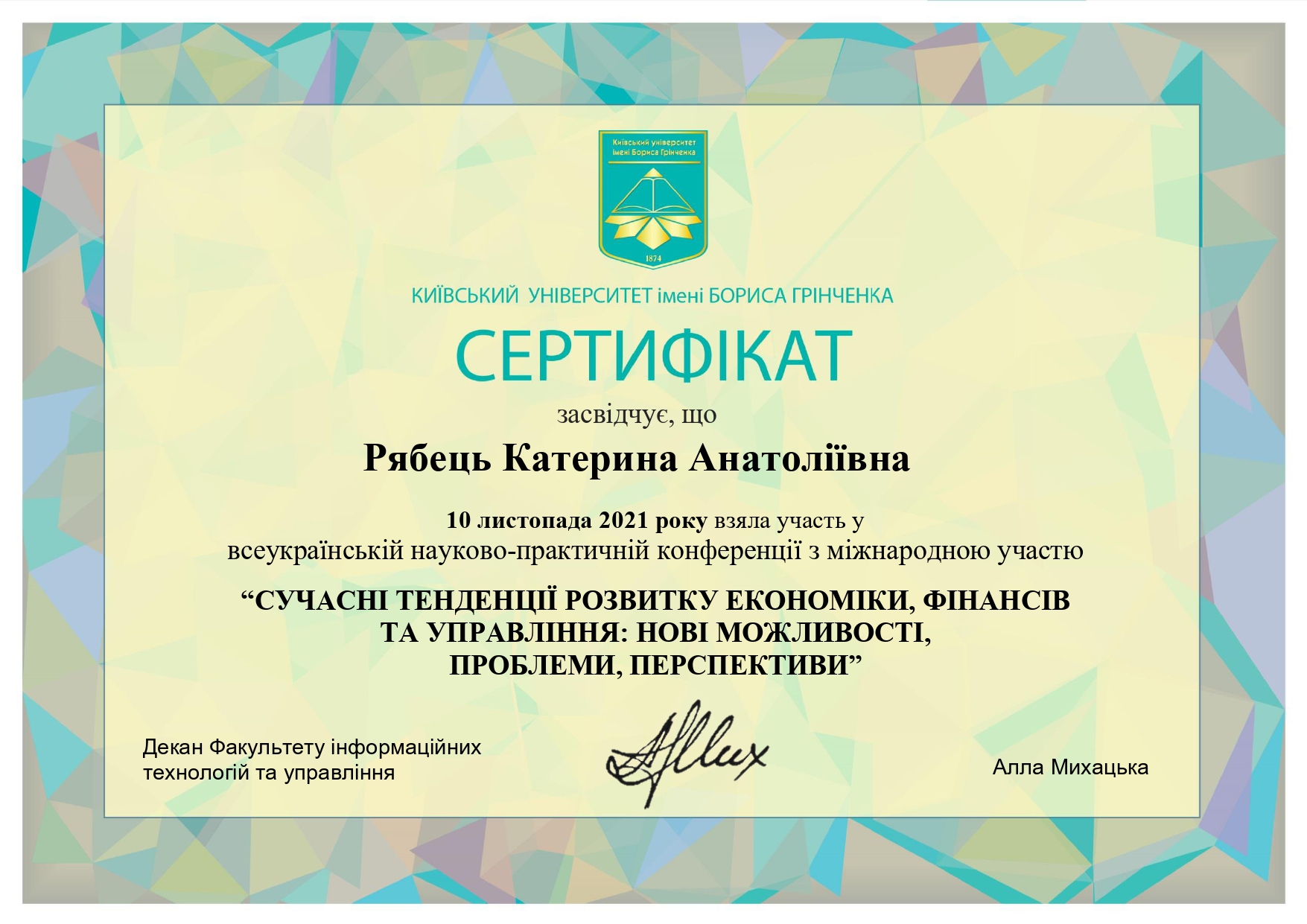 | 631 | Факультет інформаційних технологій та управління | Кафедра управління | 0.2 | 0 | 2021 | https://www.researchgate.net/profile/Katerina-Riabets |