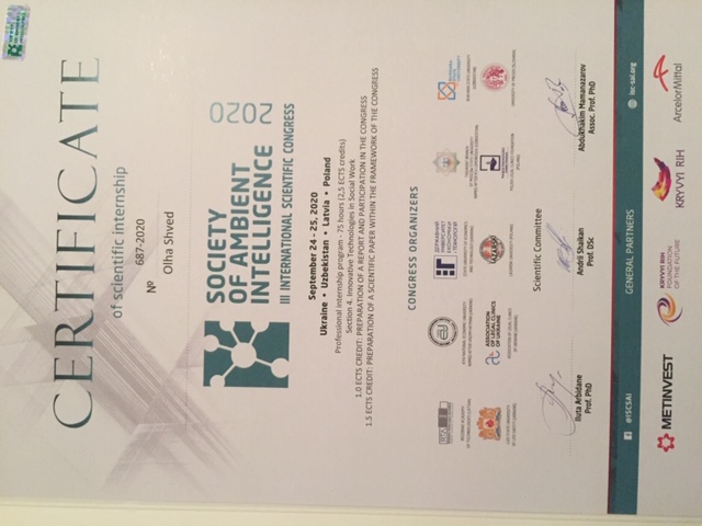 | ID | Назва | Тема доповіді | Місце проведення | Документ, що засвідчує | Дата проведення |