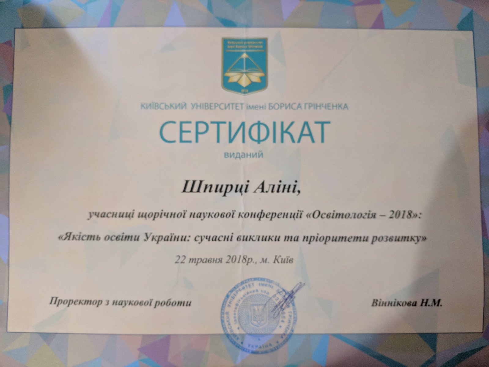 | 6005 | Наукова конференція "Освітологія-2018: Якість освіти України: сучасні виклики та пріоритети розвитку" | модератор наукової гри | м. Київ |