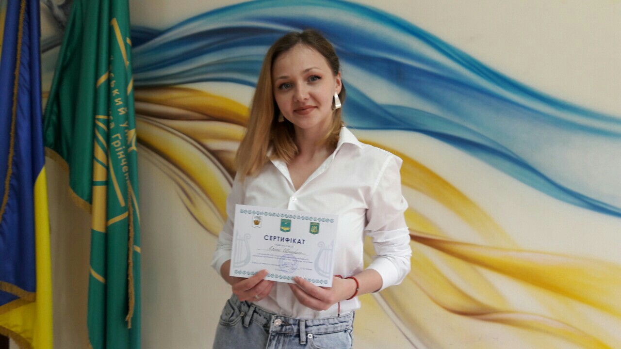 У 2017 році закінчила магістратуру Київського університету імені Бориса грінченка за напрямом "Музичне мистецтво" (викладач музичних дисциплін, хоровий диригент).