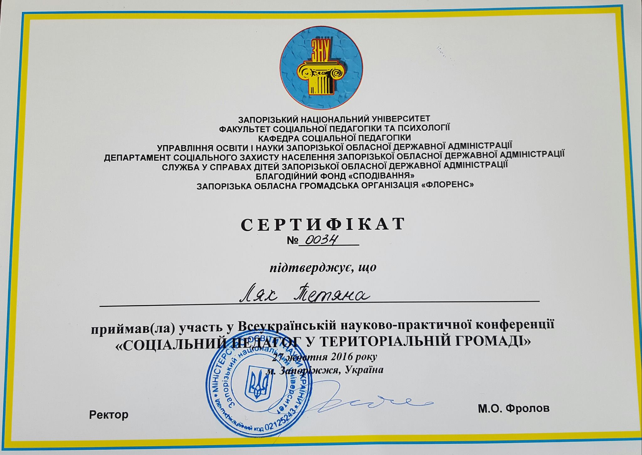 | 420 | Всеукраїнська науково-практична конференція 'Соціальний педагог у територіальній громаді' | Особливості корпоративного волонтерства в Україні | Запоріжжя, Україна |