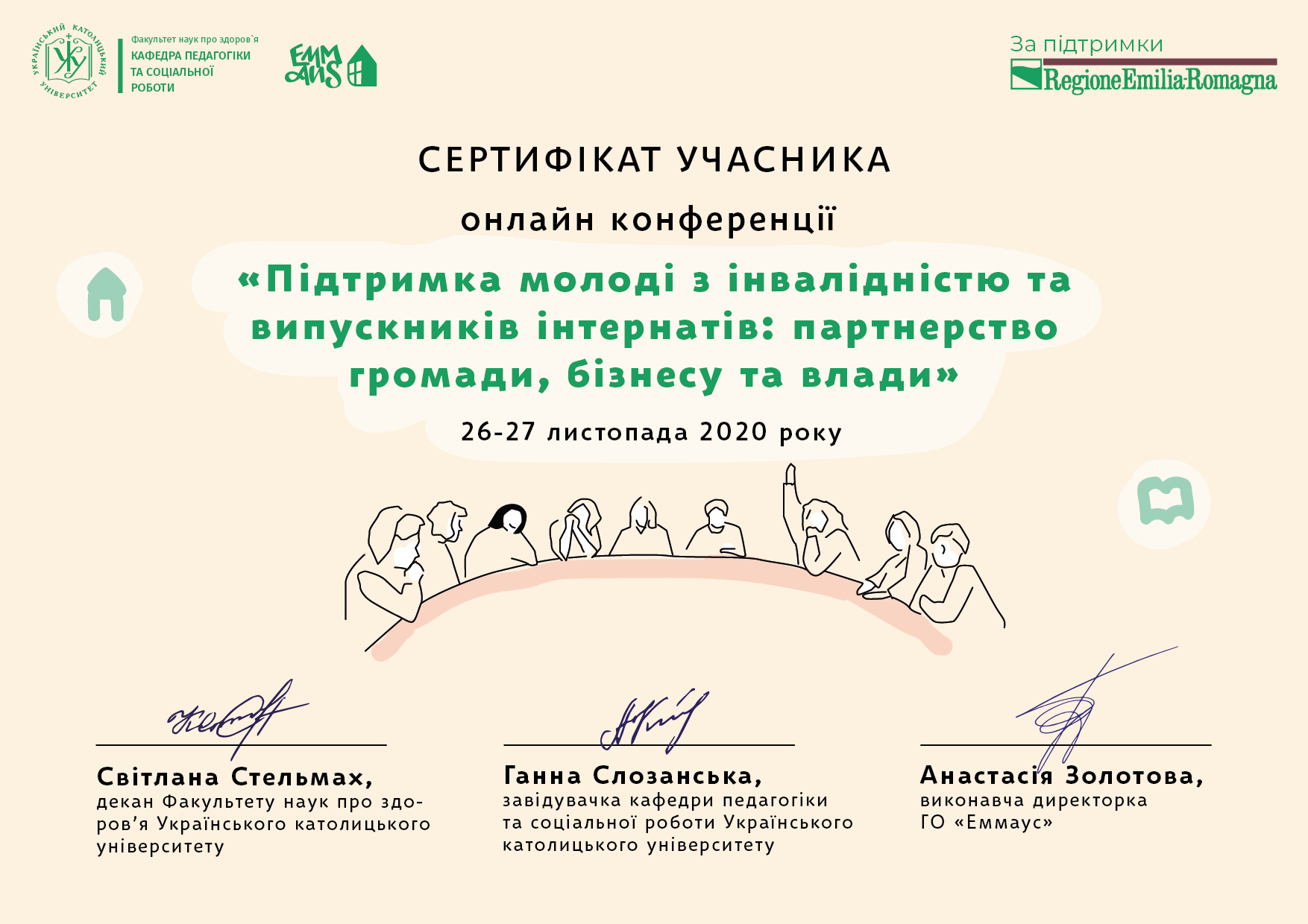| 6213 | Онлайн конференція "Підтримка молоді з інвалідністю та випускників інтернатів: партнерство громади, бізнесу та влади" | Участь у дискусії | Львів, Кафедра педагогіки та соціальної роботи Факультет наук про здоров'я ЗВО "Український католицький університет" |