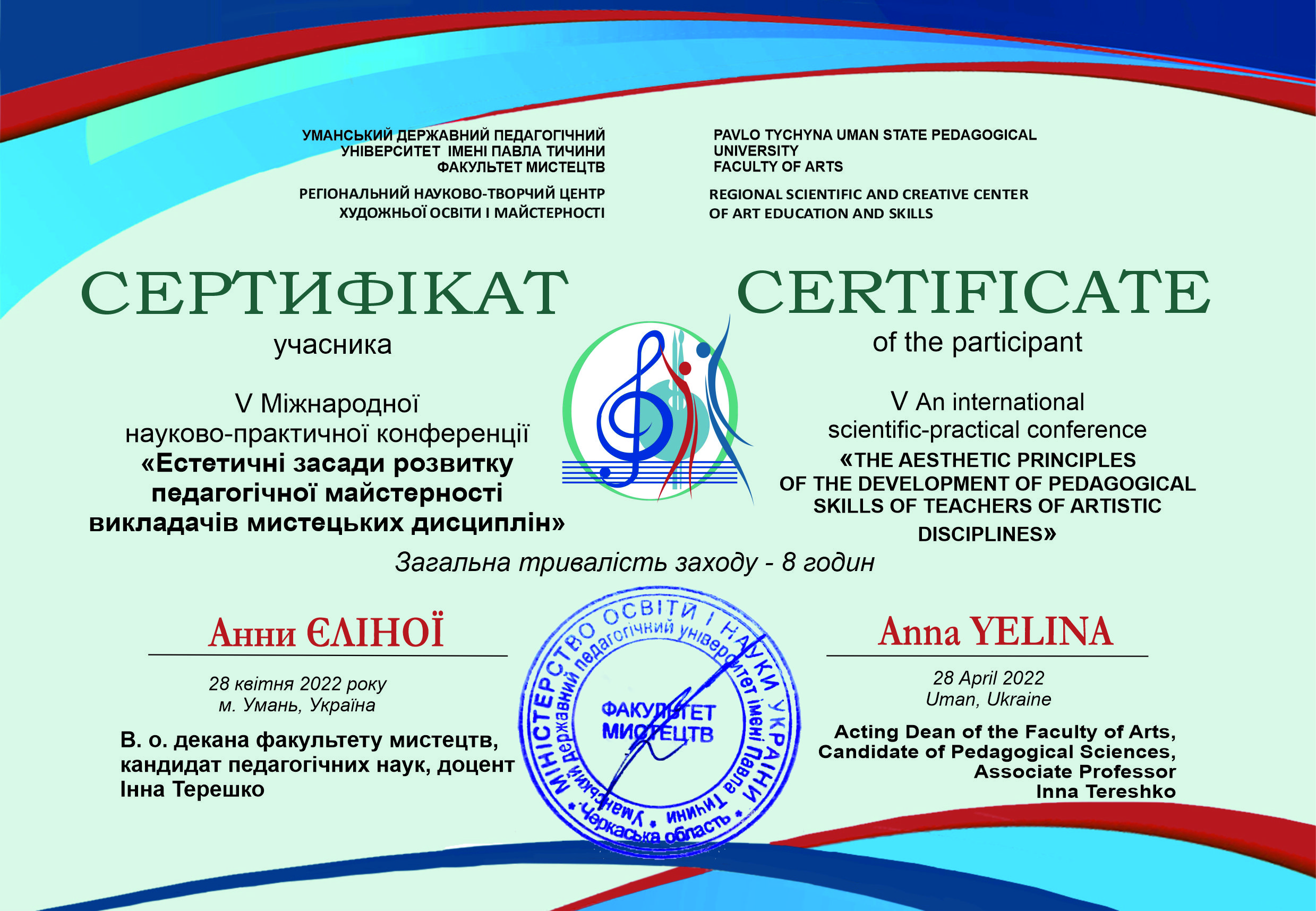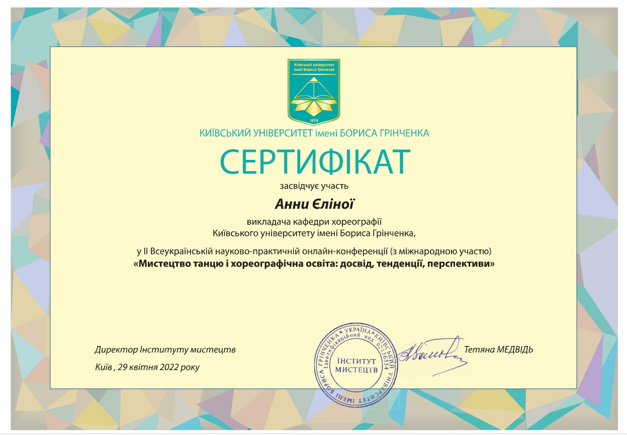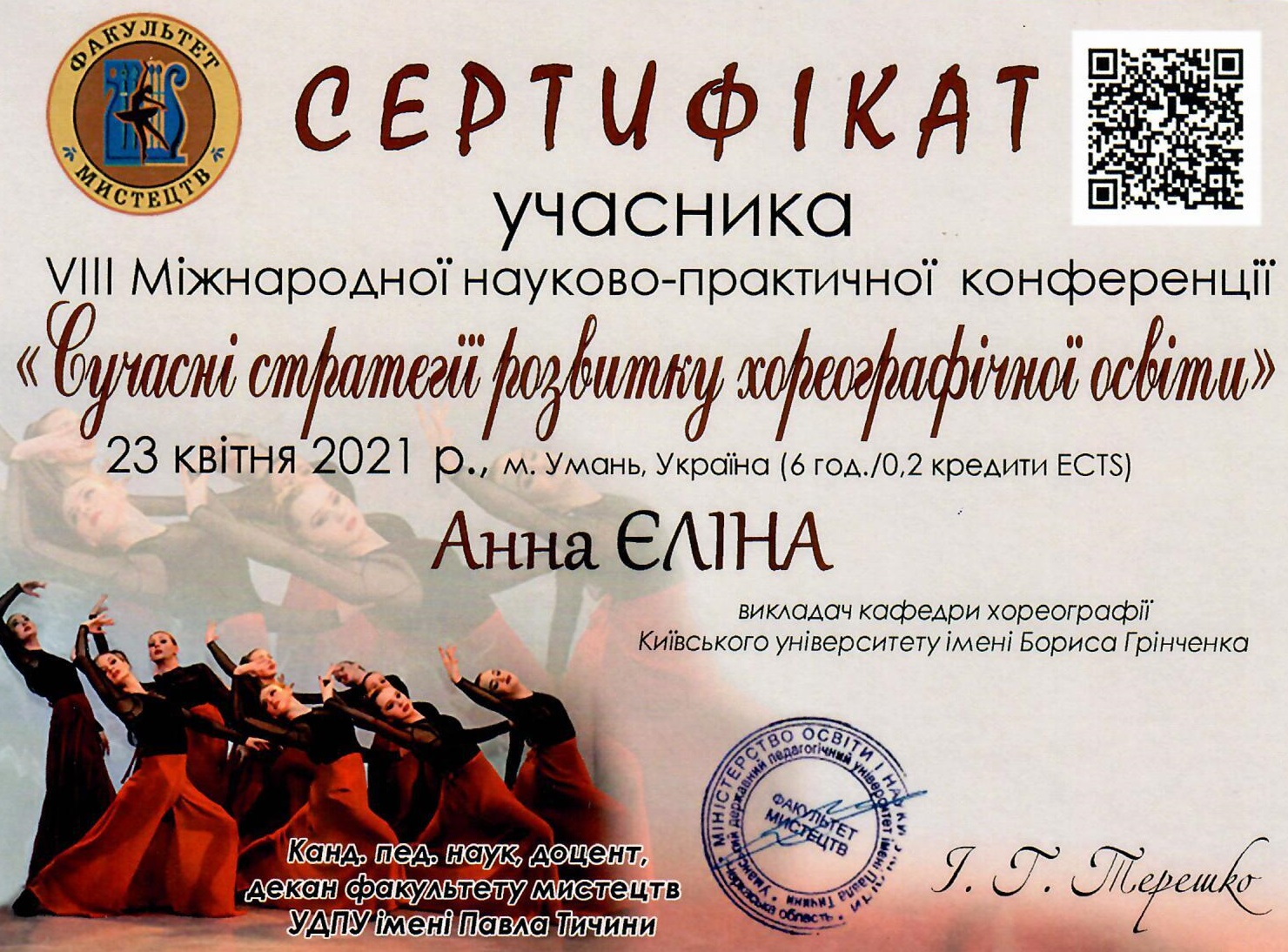 | 1223 | Факультет музичного мистецтва і хореографії | Кафедра хореографії | 0.9 | 0 | 2025 | https://www.researchgate.net/profile/Anna-Yelina/research |