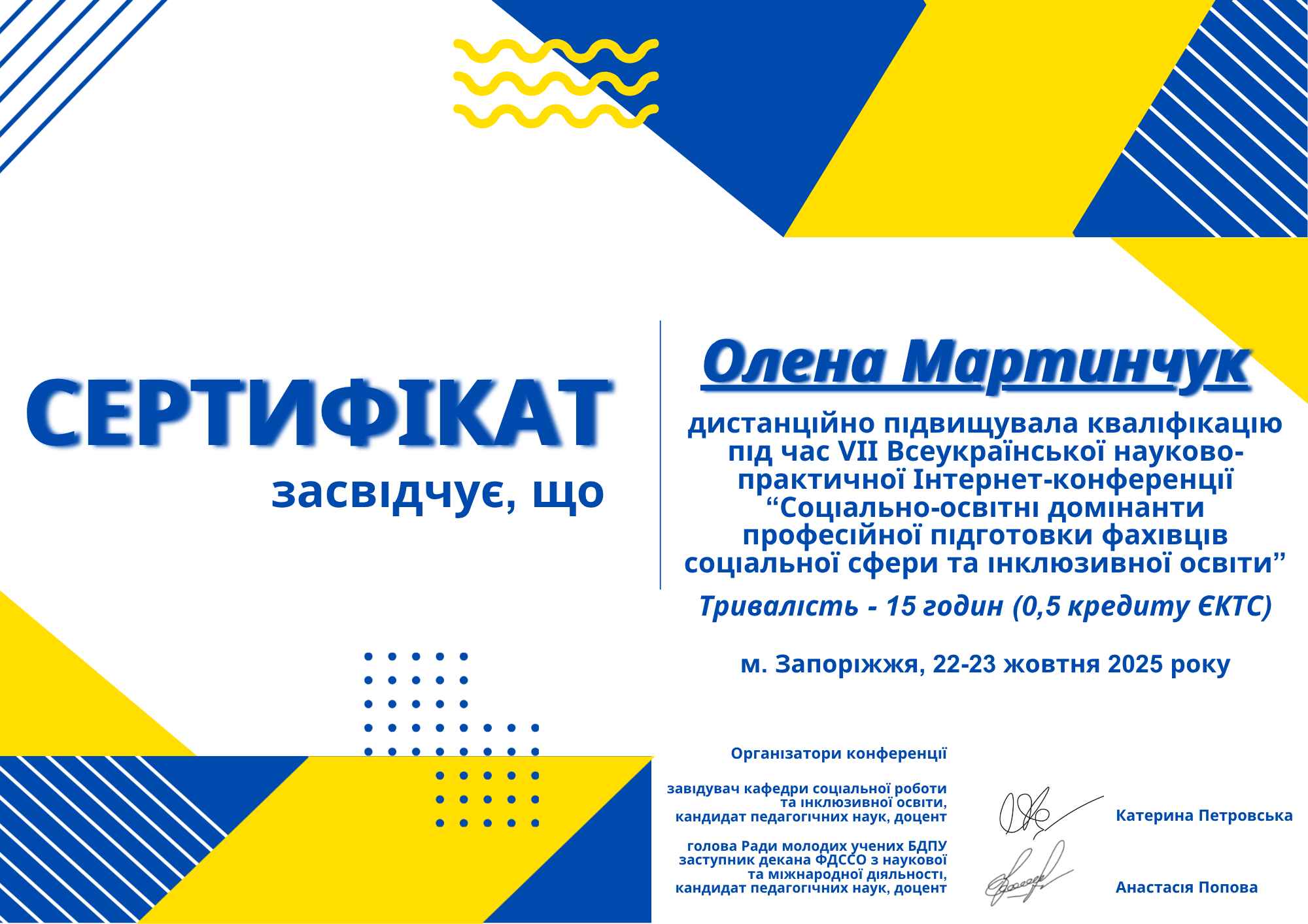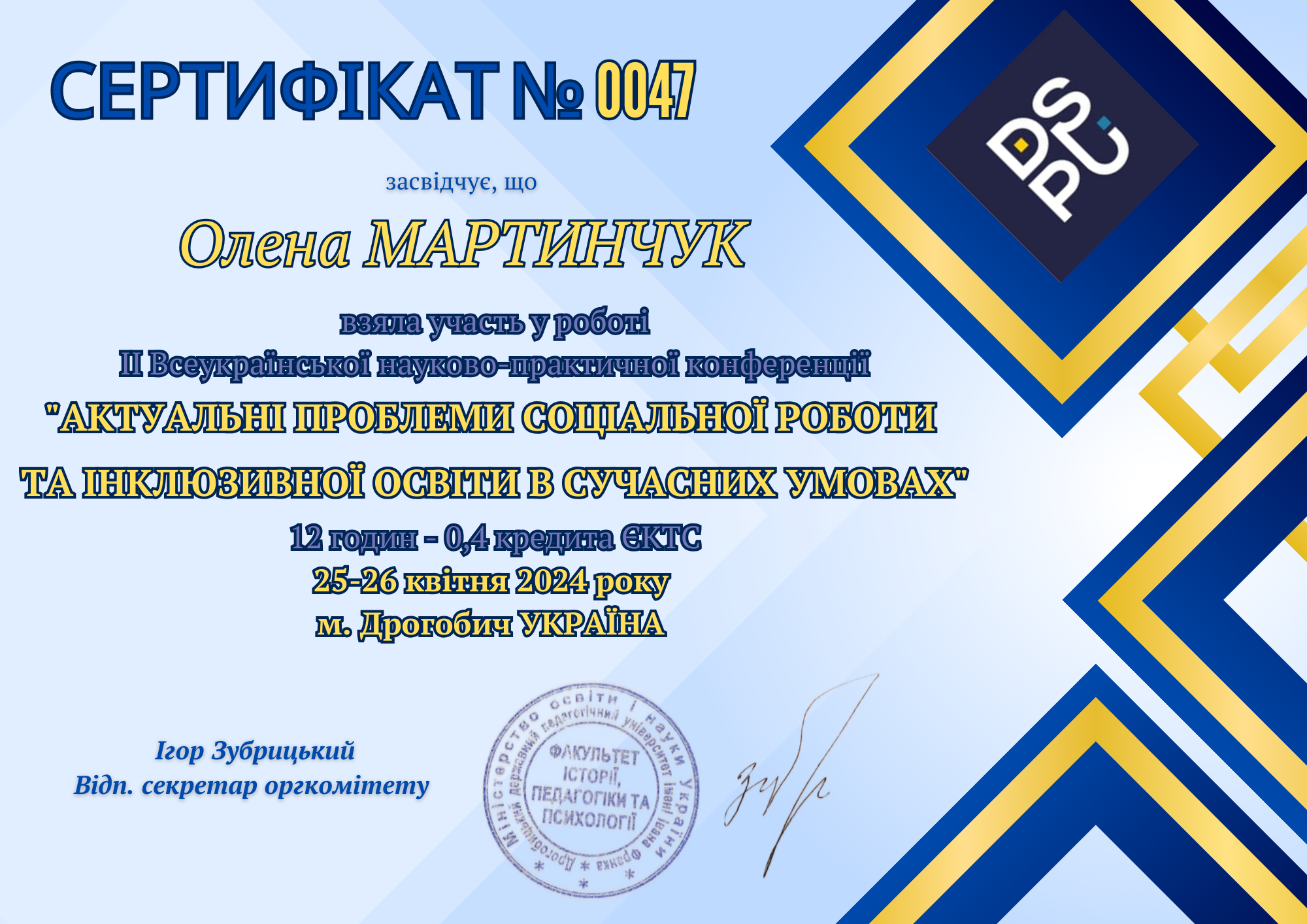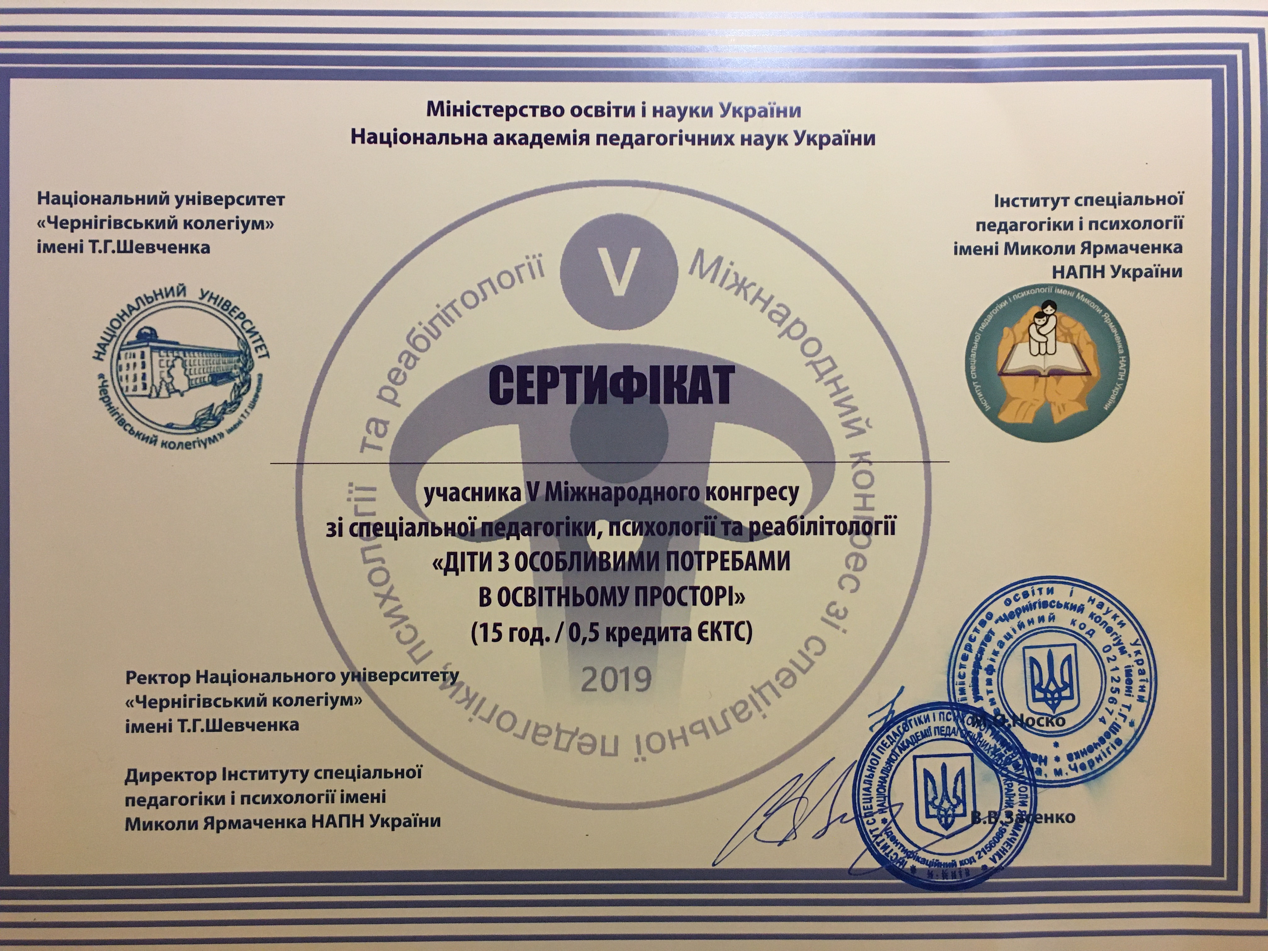 Член жюрі Всеукраїнського конкурсу "Учитель року" у номінації "Учитель інклюзивного класу" (2019).